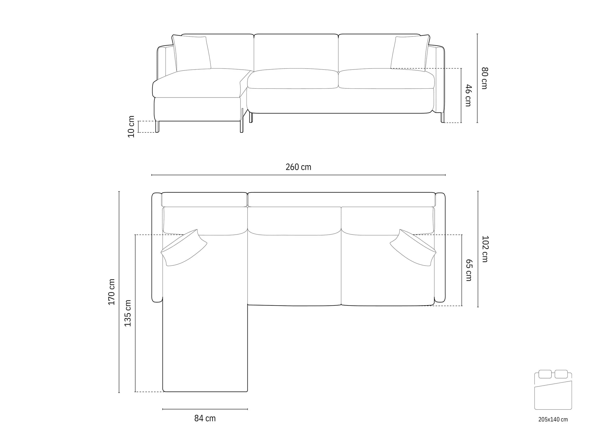 Głębokość szezlonga: 135 cm