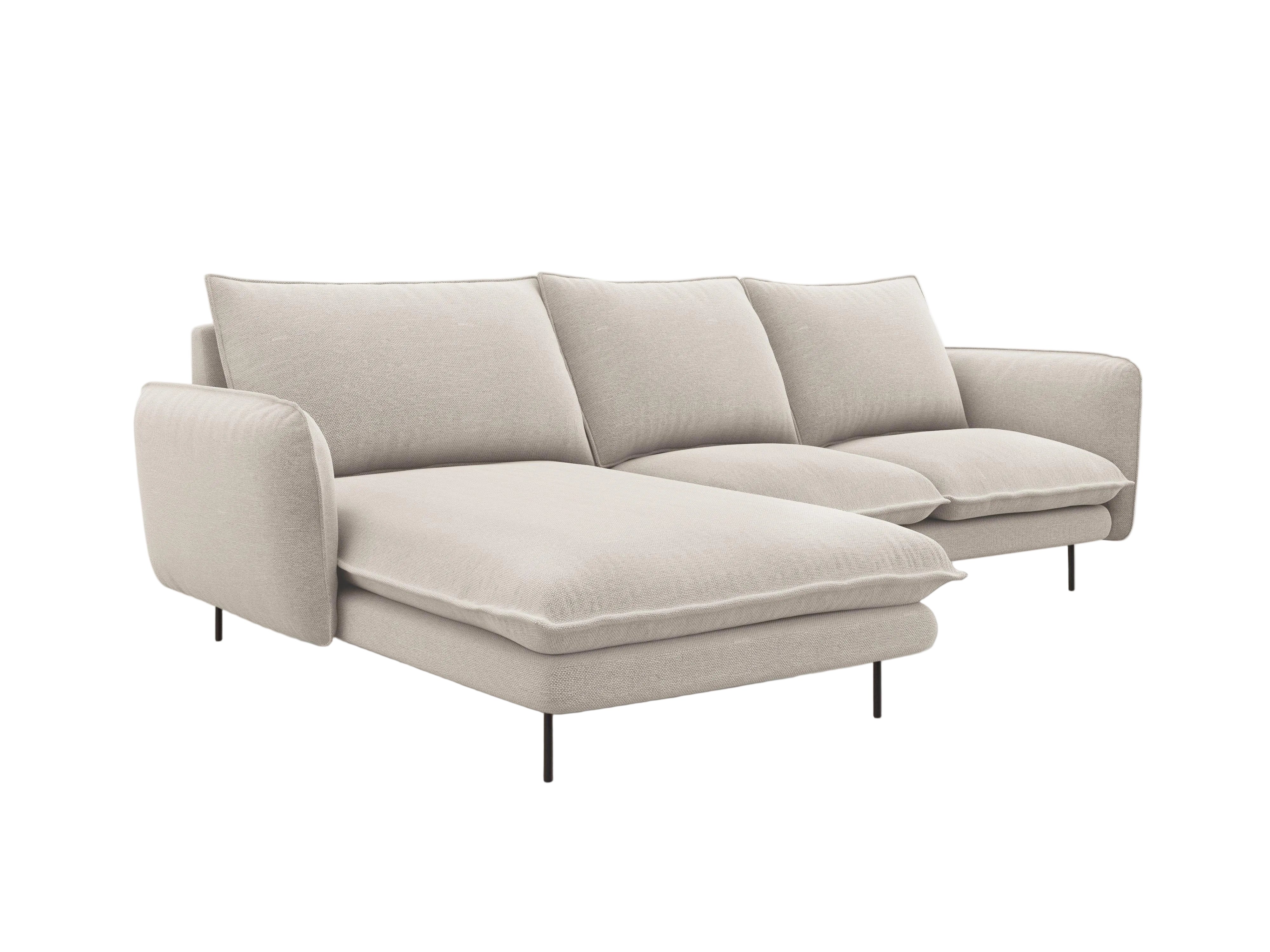 Linksseitige 5-sitzige Eckcouch VIENNA in hellbeigem Chenille mit schwarzem Gestell