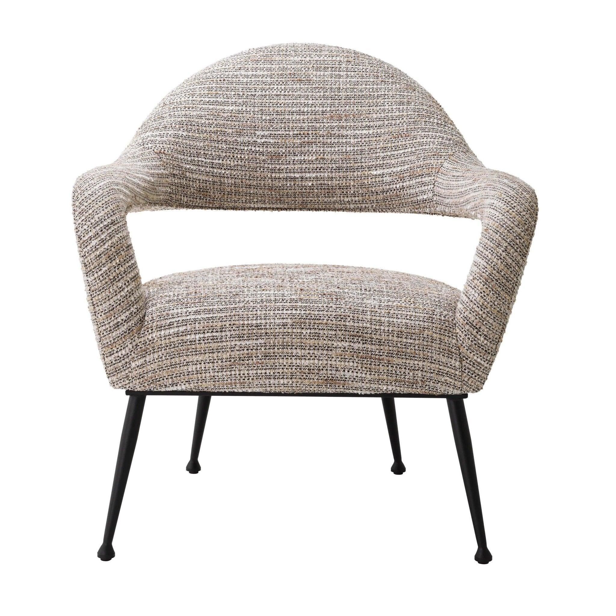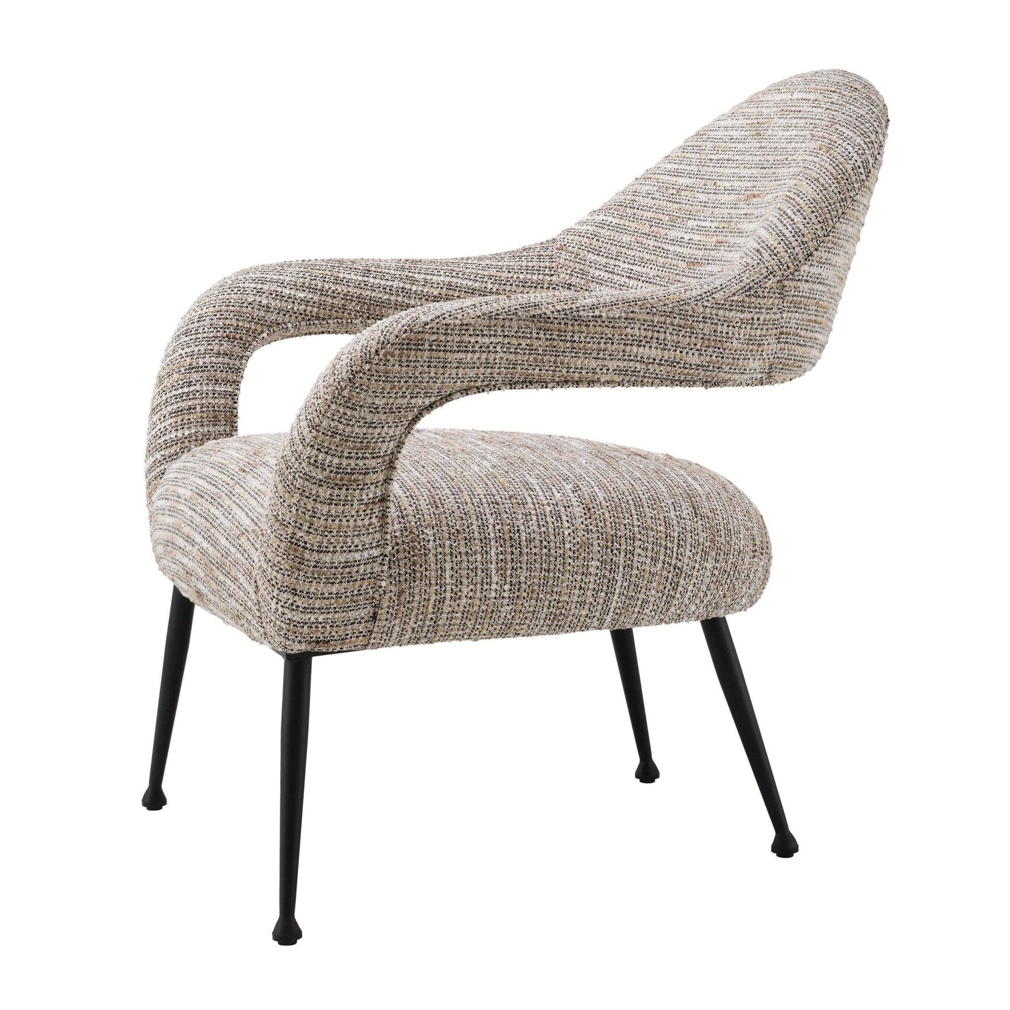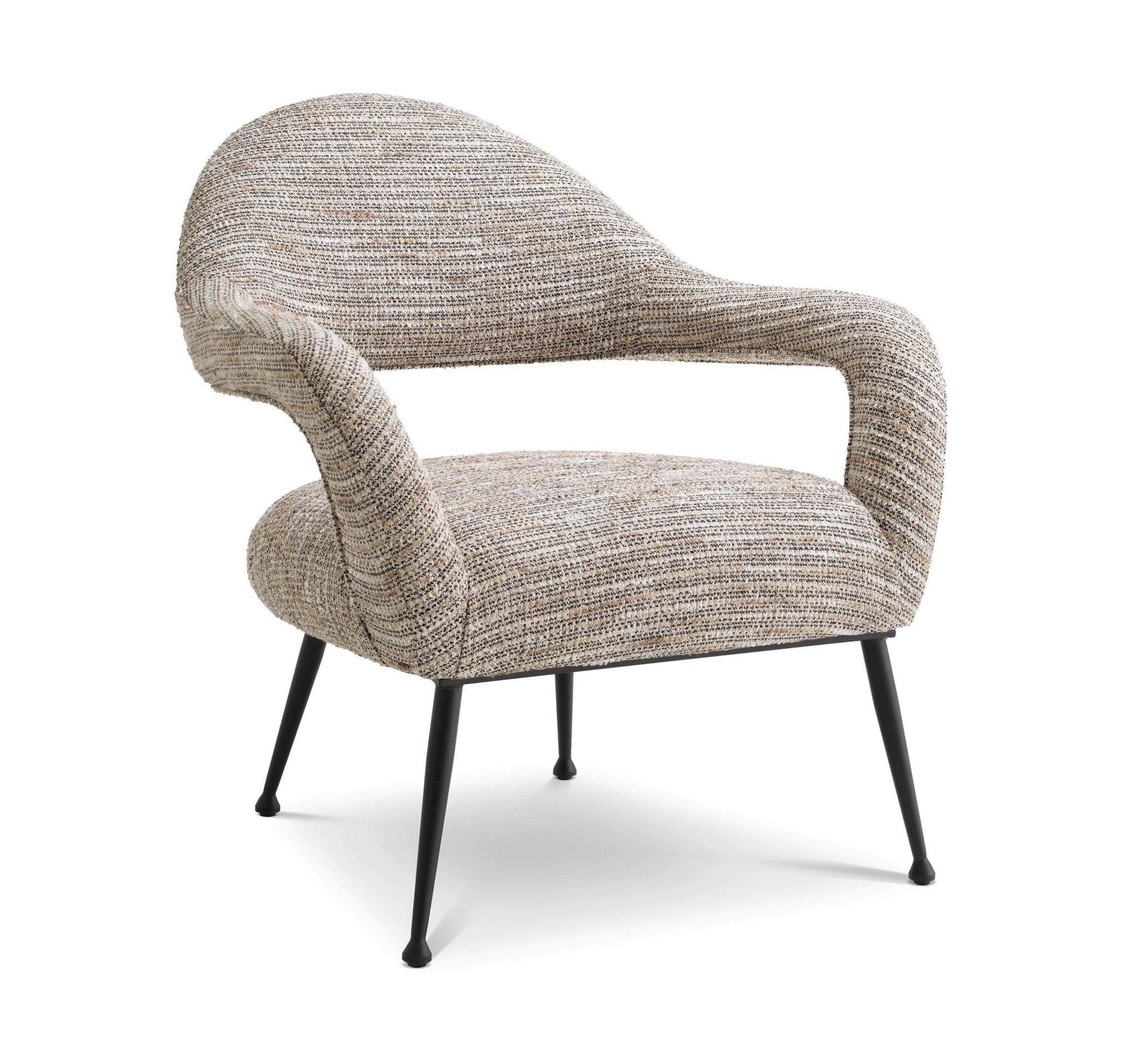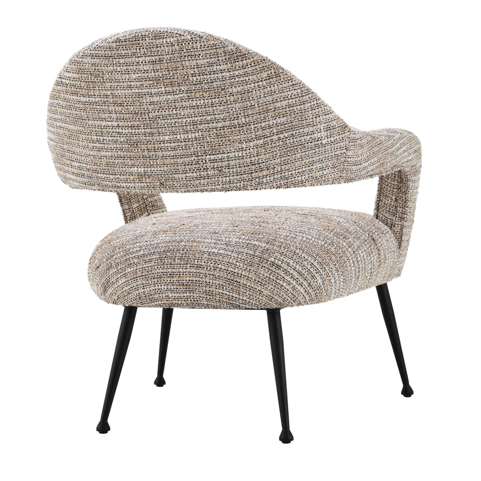 Beige Sessel Lombardi ist wie der Eintritt in eine elegante Boutique im Herzen von Paris, wo die Echos vergangener Epochen mit der Moderne verschmelzen. Sein üppiger beiger Mademoiselle-Bezug erinnert an Luxus und Raffinesse, während die Mischung aus gebrochenem Weiß und goldenen Fäden mit kurzen Fransen ihm Charakter verleiht. Es ist nicht nur ein Sessel, es ist ein Gefühl, das Erinnerungen an Vintage-Haute-Couture und begehrte Bouclé-Jacken aus Tweed weckt, die Symbole von Klasse und Stil waren.
