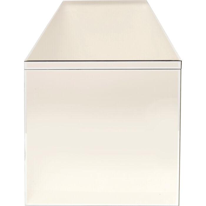 Der luxuriöse, spiegelnde Schreibtisch mit eleganten Glasgriffen und Stauraum in drei Schubladen ist die ideale Lösung für das Home Office mit Wow-Effekt. Genug Platz für den Laptop, Schreibutensilien und einen schönen Strauß bunter Blumen.