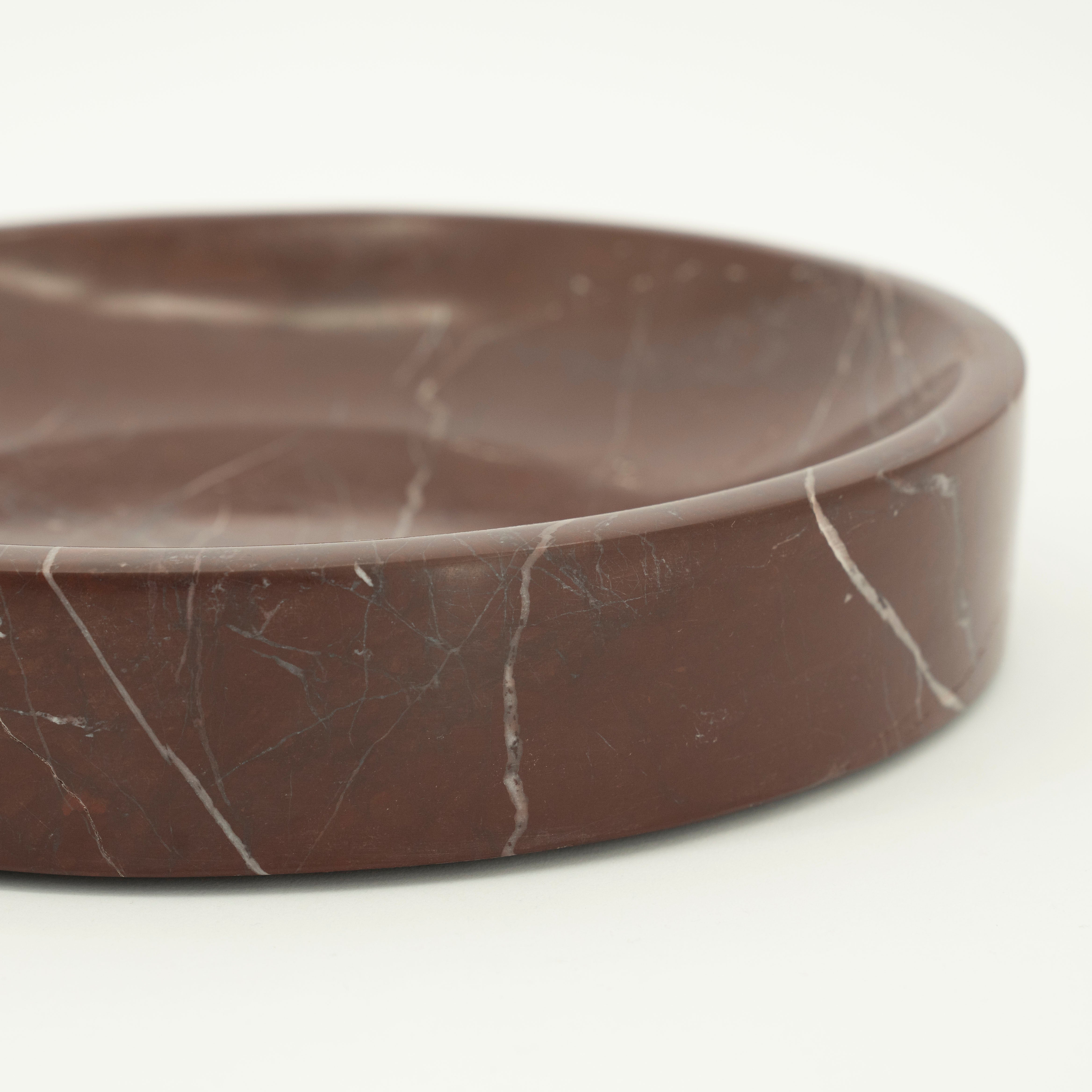 Taca Schale ist ein elegantes Accessoire aus natürlichem Marmor, das sich durch seinen zeitlosen Charakter und das einzigartige Muster des Steins auszeichnet. Jedes Exemplar ist einzigartig, dank der natürlichen Unterschiede in Farbe und Struktur des Materials. Die einfache, minimalistische Form sorgt dafür, dass die Schale sowohl in modernen als auch in klassischen Innenräumen perfekt zur Geltung kommt.