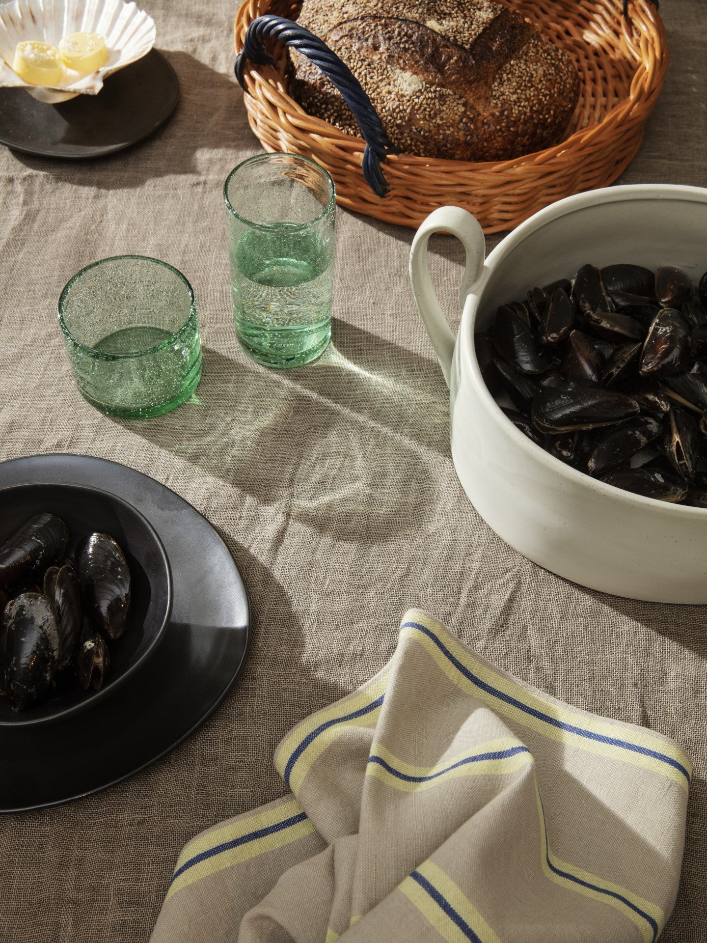 Die große Schale Flow Centrepiece ist ein einzigartiges Element der Flow-Kollektion, die moderne Ästhetik mit traditioneller Handwerkskunst verbindet. Hergestellt aus Steinzeug und mit einer reaktiven, halbmatten Glasur in einem tiefen Farbton von gebrochenem Weiß überzogen, begeistert sie durch natürliche Unregelmäßigkeiten und subtile Unterschiede in der Struktur. Ihre minimalistische Form wird durch zwei verlängerte Griffe aufgebrochen, die ihr Charakter verleihen und sie zum Mittelpunkt jeder Tischgestaltung machen.