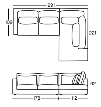 Szerokość siedziska: 231 cm