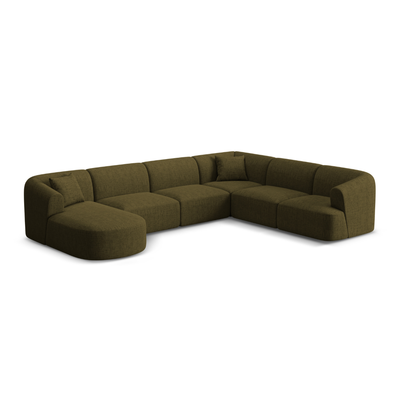 Rechtsseitige panoramische 7-sitzige Eckcouch CAMPI grün Chenille