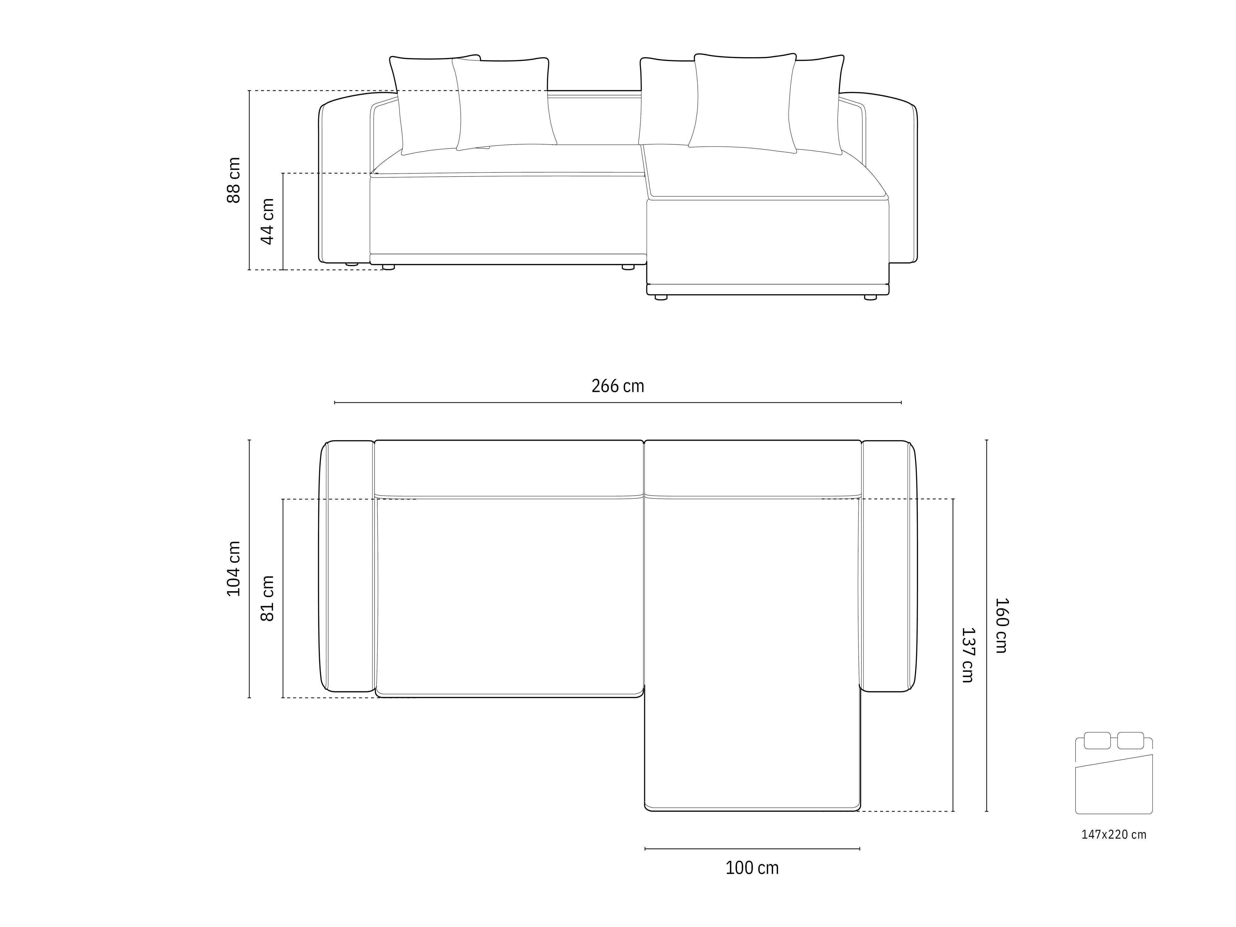 Rechtsseitige Schlafcouch RIBES in beigem Cordstoff