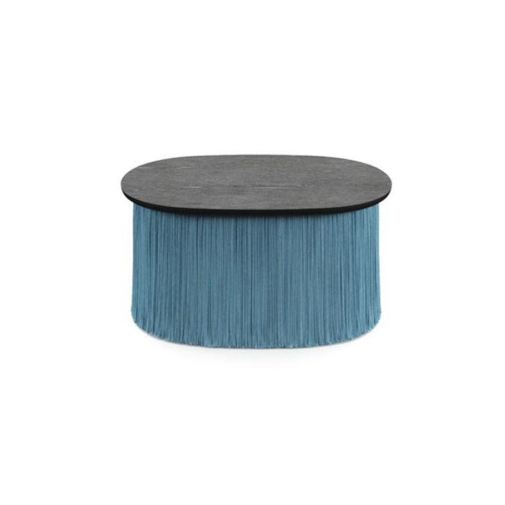 Meduse ist ein auffälliger Beistelltisch , entworfen von Simone Cagnazzo für Liu Jo Living. Der Couchtisch, niedriger und breiter, sowie der Beistelltisch, gedacht als logische Fortsetzung der Armlehne des Sofas, ist Meduse die ideale Tischplatte. Als Ikone der Geselligkeit entstand Meduse aus der Kombination einer furnierten Holzplatte – erhältlich in der Farbe Natur-Eiche und Graphit-Eiche – mit einem textilen Detail, das auf das dekorative Element bürgerlicher Salons anspielt.