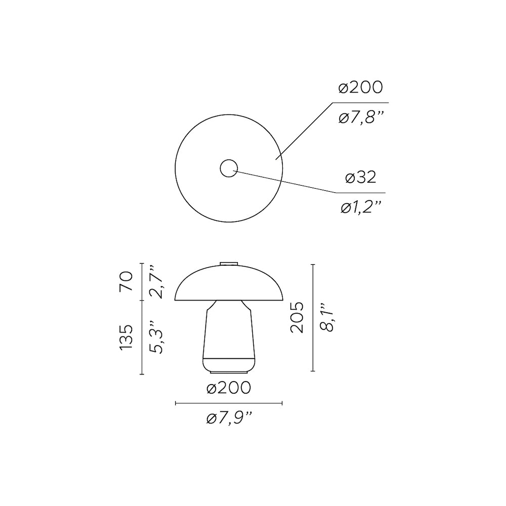 Tischlampe Ongo ist tatsächlich eine ausgezeichnete Wahl, wenn Sie nach einem Element suchen, das Ihrem Innendesign eine besondere Atmosphäre und Licht verleiht. Ein charakteristisches Merkmal der Lampe ist ihr harmonisches Gleichgewicht zwischen der Schlichtheit der Konstruktion und dem Glanz des satinierten Finishs. Dieses auffällige Gleichgewicht bringt einen subtilen, aber dennoch beeindruckenden Akzent in den Raum. Ongo ist eine akkubetriebene Lampe in Form eines Pilzes, die Magie in Ihr ganzes Zuhause bringt.