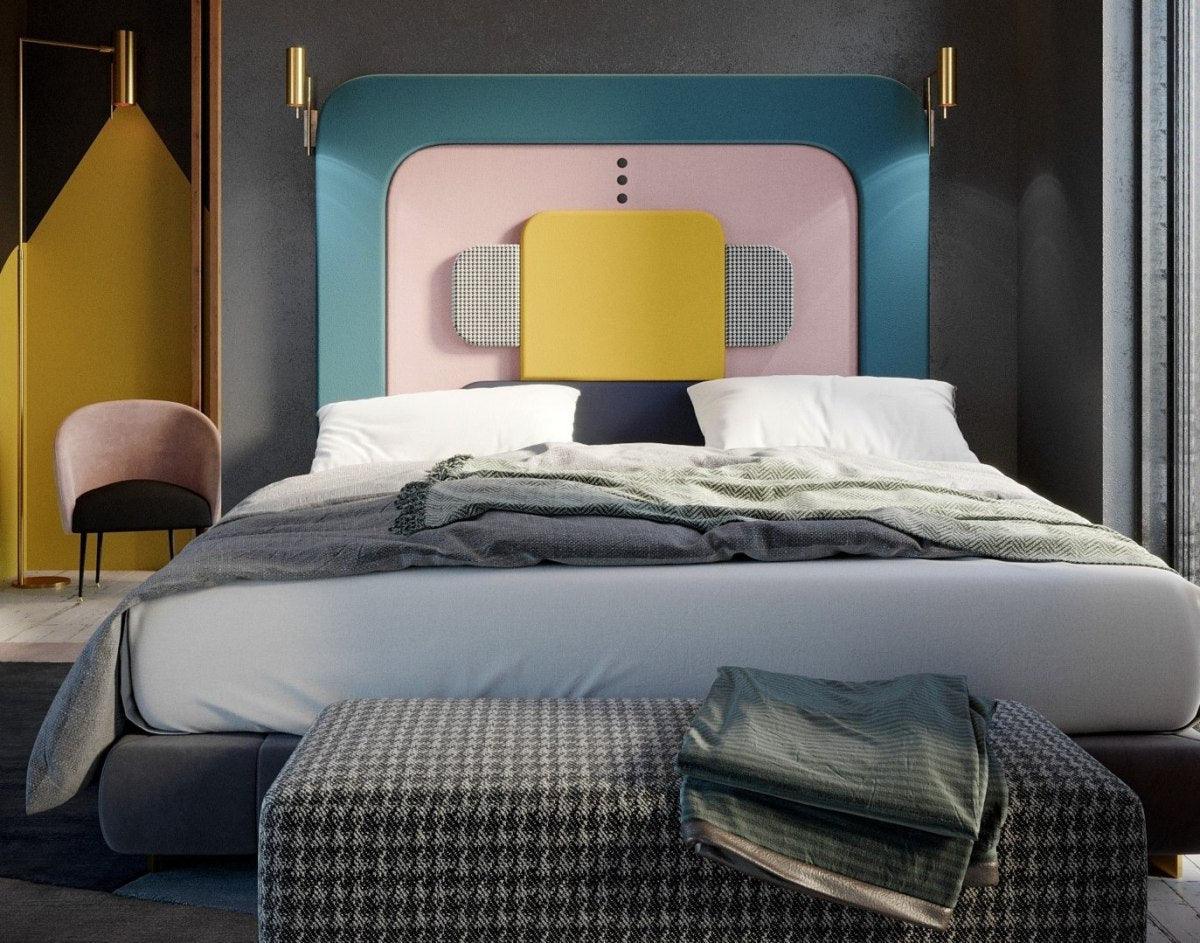 Das Kopfteil der Plum -Kollektion ist ein ungewöhnliches Projekt von Kataryna Jasyk, das sich mit seiner Komposition und seinem Block auf den postmodernen Stil bezieht Memphis. Die Kombination aus kräftigen Farben und geometrischen Formen erzeugt ein Augenfassungsdesign. Das Ganze ist weich, Samtstoff, was Subtilität und Eleganz hinzufügt.