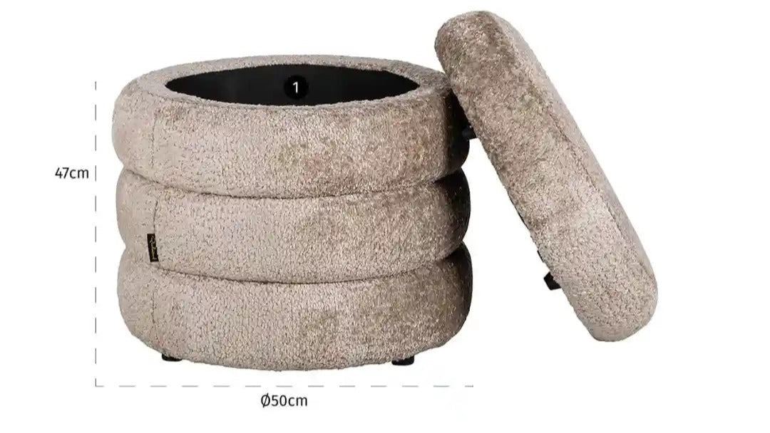 Moderner Hocker Adele, gepolstert mit weichem Boucle-Stoff, ist das ideale Accessoire für Innenräume, in denen Stil und Komfort zählen. Die runde Form mit dekorativen Nähten verleiht ihm einen originellen Charakter, und die neutrale Farbe fügt sich perfekt sowohl in helle als auch in dunkle Arrangements ein. Er kann als zusätzliche Sitzgelegenheit im Wohnzimmer, praktisches Element am Schminktisch oder als designtechnischer Akzent im Schlafzimmer dienen.