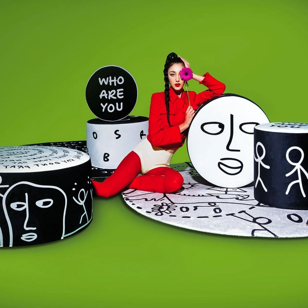 Puff Midnight Monologue ist ein ausdrucksstarkes und modernes Element der Innenausstattung, das die Funktion eines praktischen Sitzmöbels mit der Ästhetik zeitgenössischer Gebrauchskunst verbindet. Die charakteristische Form und die originelle Grafik sorgen dafür, dass dieses Möbelstück nicht nur eine praktische Rolle spielt, sondern auch zu einem faszinierenden Akzent in der Gestaltung wird.