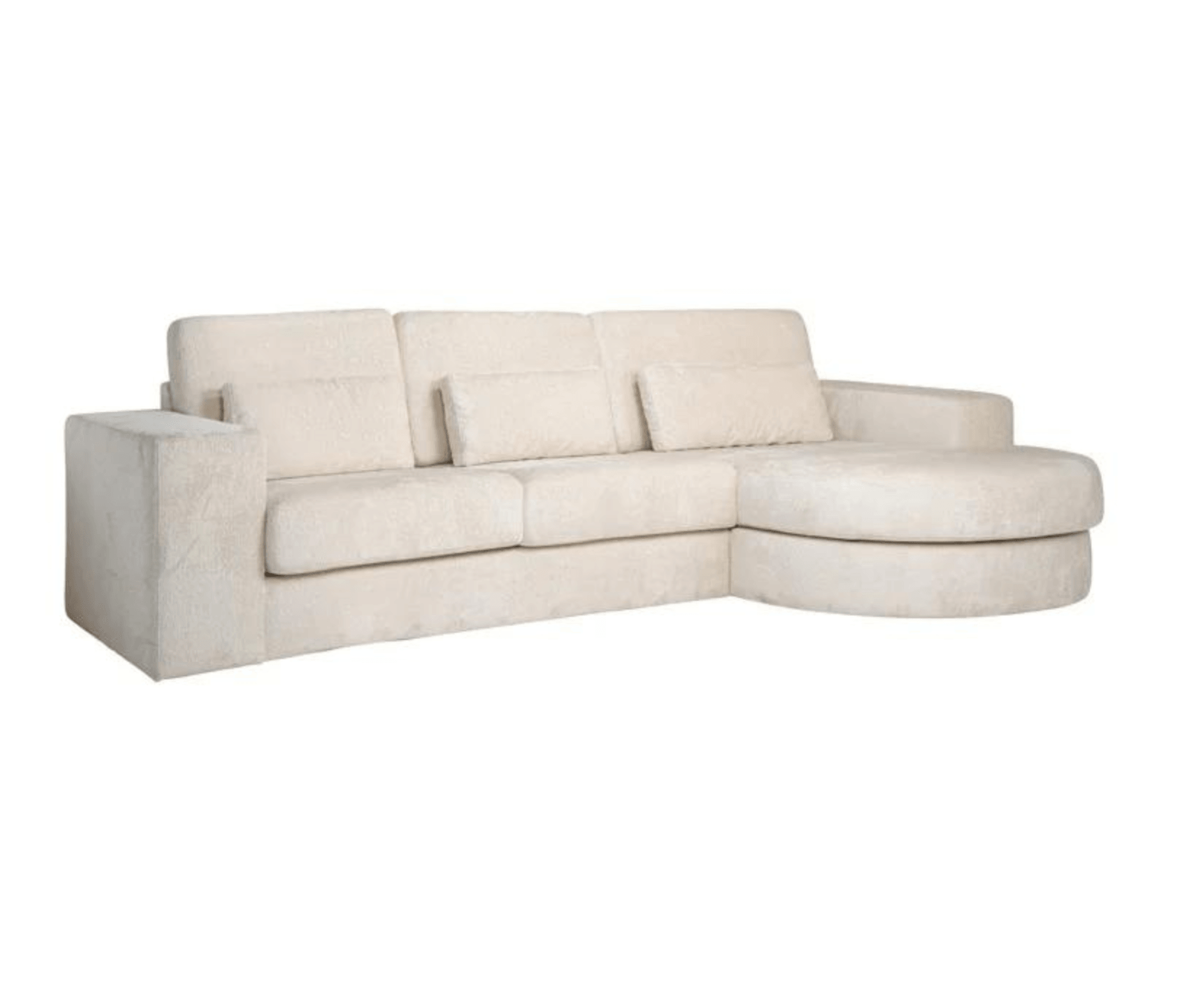 Ecksofa Felix wurde aus weichem und angenehm anzufassendem Chenil-Stoff in Cremefarbe gefertigt. Diese Kombination aus Eleganz und Komfort schafft ein Möbelstück, das nicht nur ästhetisch ist, sondern auch angenehme Erlebnisse während der Nutzung bietet.