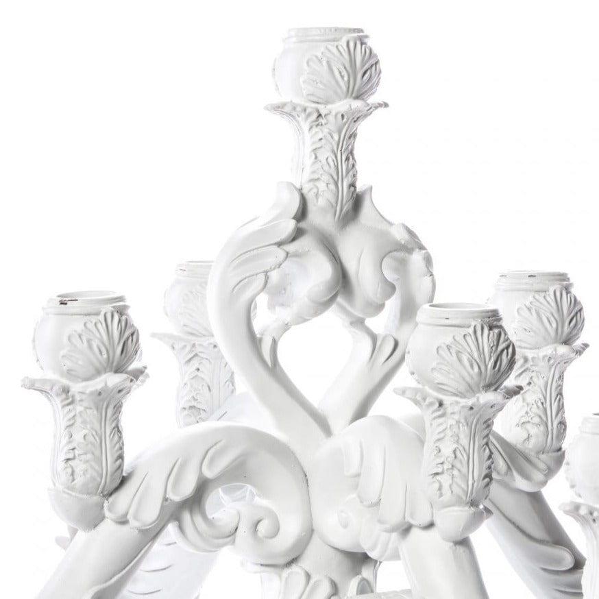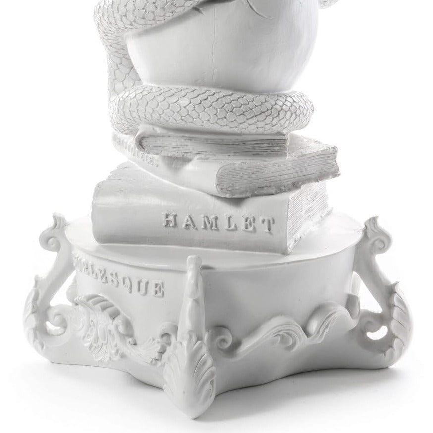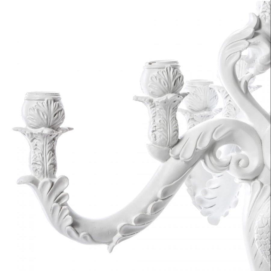Der riesige Burlesque -Schädelkerzenhalter bietet eklektisch Stil für ein unerwartetes Abendessen mit Kerzenschein. Es handelt sich um einen Vorschlag, der den Avant -Gart -Ansatz mit dem Barock Grotesque verbindet.