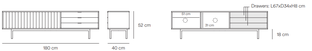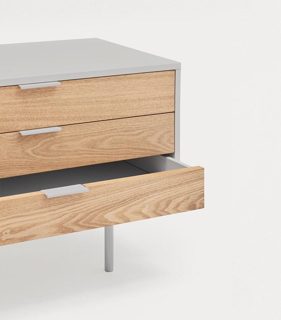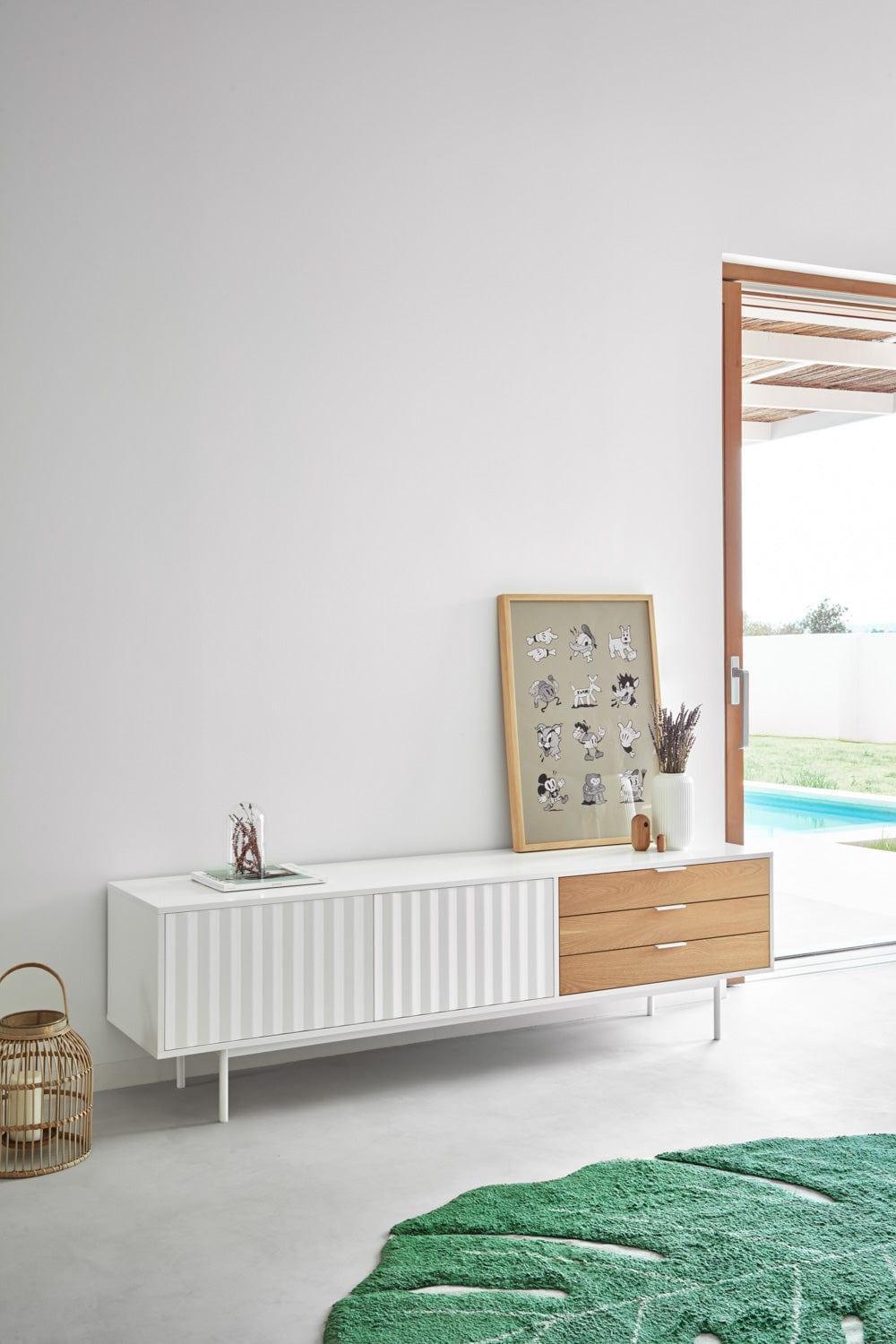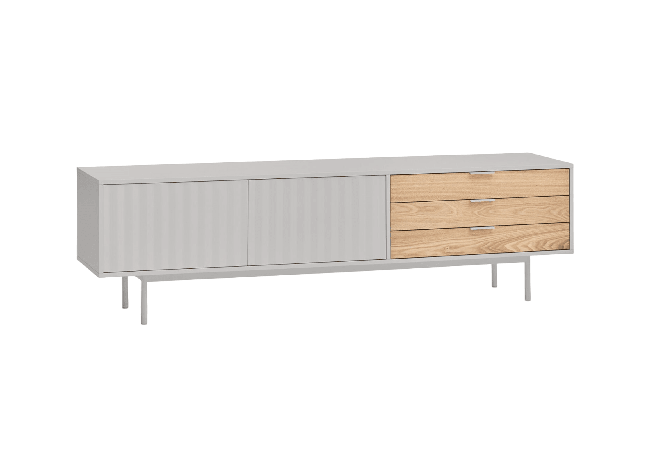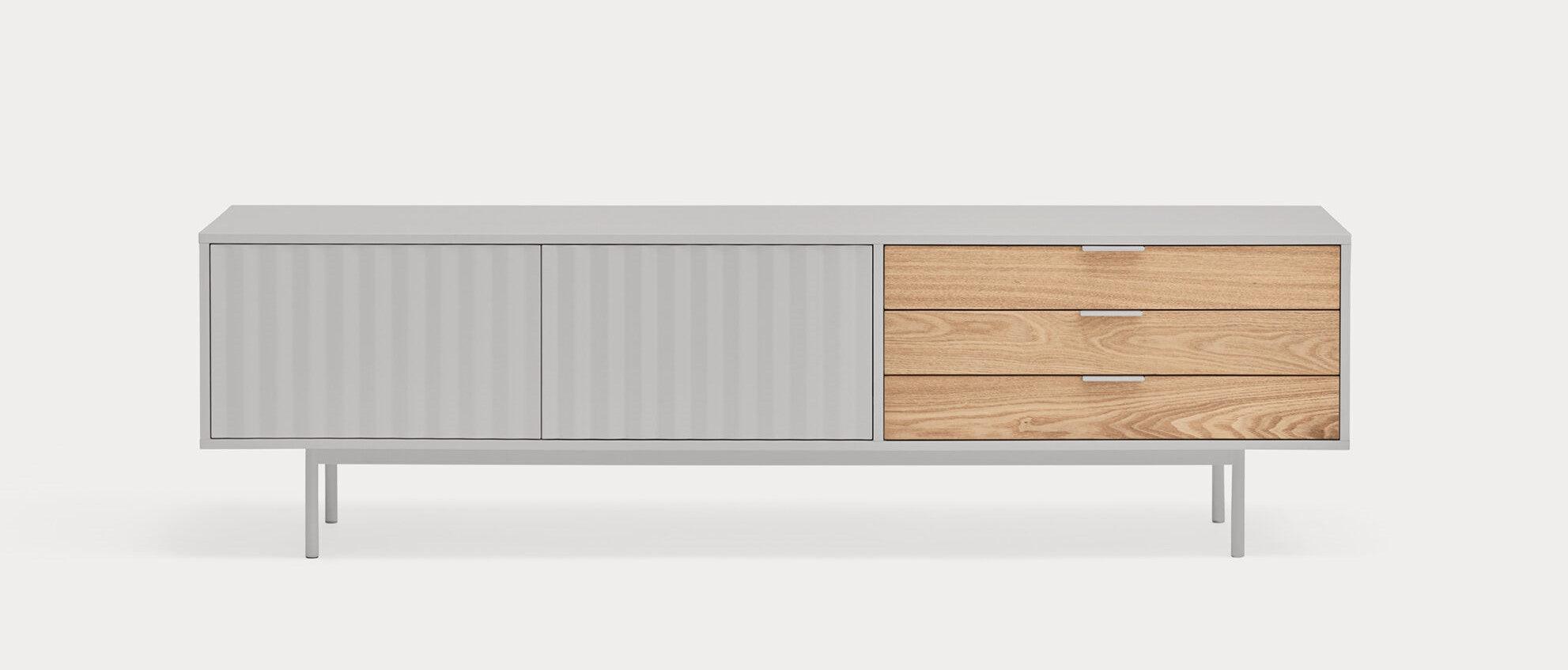 Wie die meisten Projekte der spanischen Marke Teulat, TV-Schrank zeichnet sich die Sierra durch hohe Verarbeitungsqualität und klassische Formen aus. Die Kombination aus Grau und Holz verleiht dem Schrank ein modernes und gleichzeitig gemütliches Aussehen.