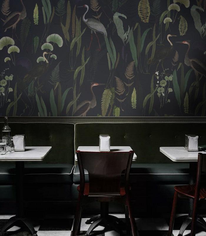 Vlies-Tapete mit Pflanzenmotiv CALM HERON marineblau