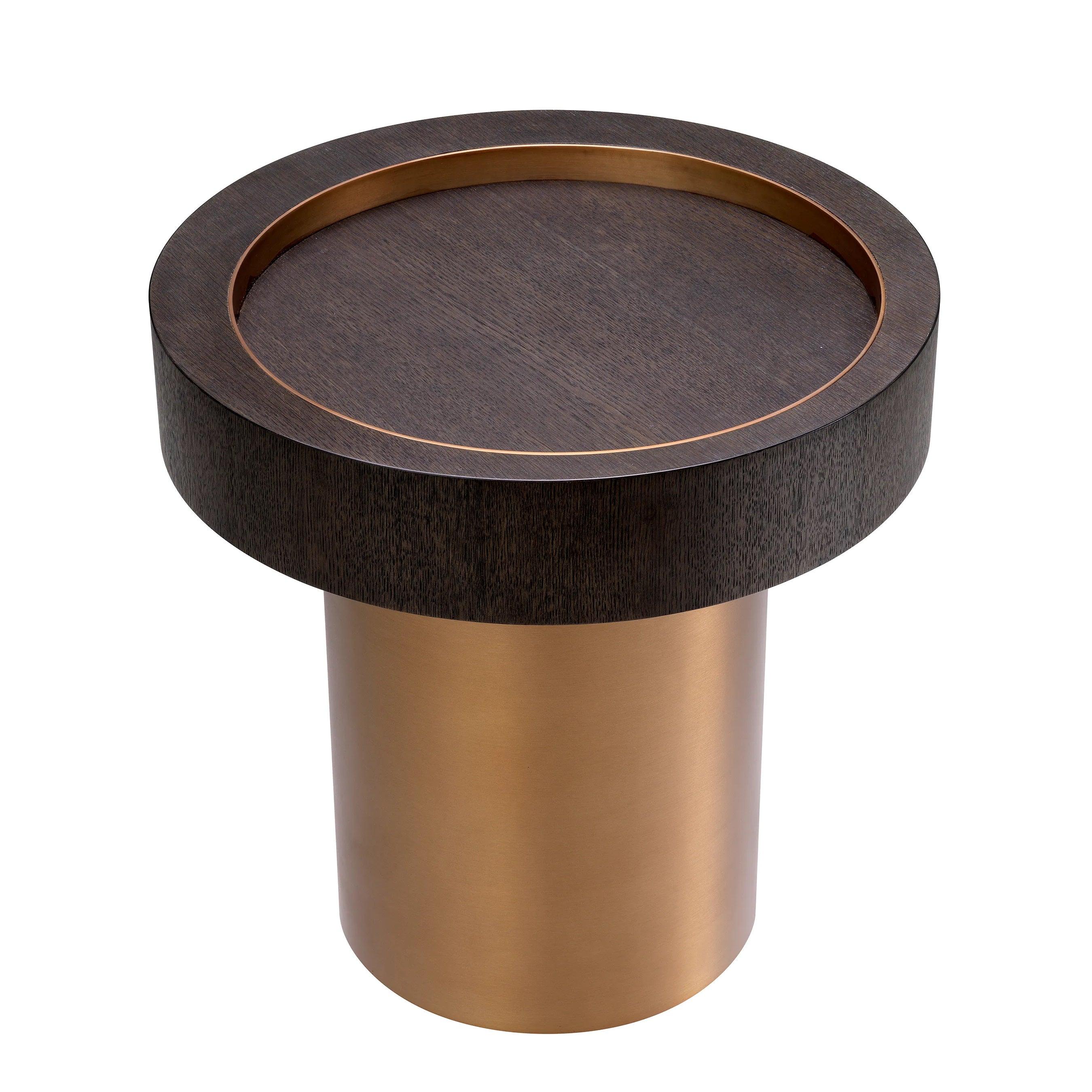 Die einzigartige, perfekt runde Form des messingfarbenen braunen Tisches Otus ist sowohl funktional als auch ästhetisch. Sie sorgt dafür, dass dieses Möbelstück nicht nur harmonisch in die Umgebung passt, sondern auch zu einem markanten Akzent wird.