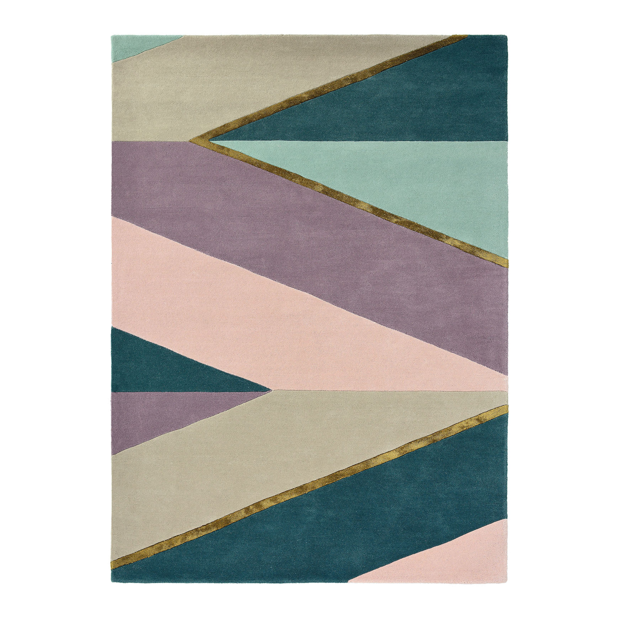 Grün-roter Teppich begeistert mit seinem geometrischen Muster und der eleganten Farbkombination, die jedes Interieur perfekt beleben wird. Hergestellt aus reiner Wolle mit einem Hauch von Viskose, bietet er Weichheit, Komfort und einen sanften Glanz.