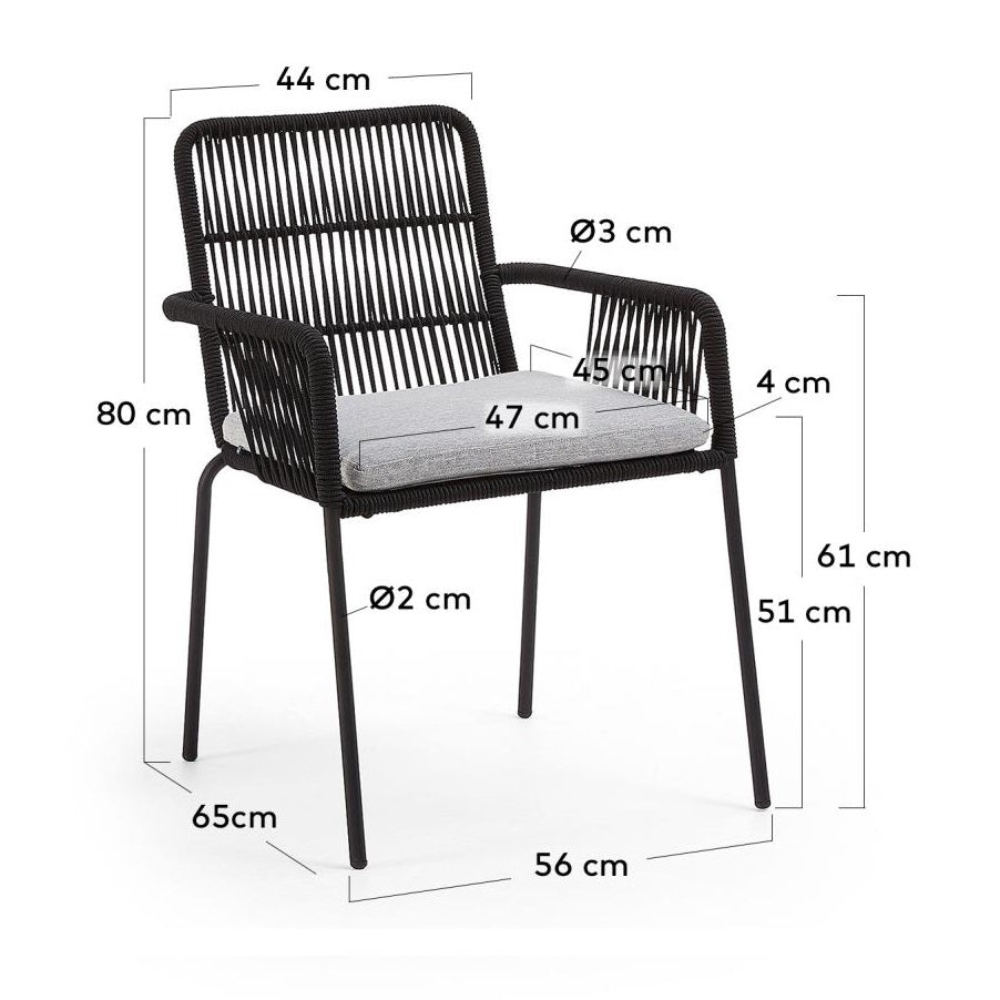 Ihr einzigartiges Design basiert auf einem Sitz aus handgeklemtetem Seil, was ihnen ein einzigartiges, natürliches Aussehen verleiht. Darüber hinaus werden die für die Produktion verwendeten Materialien sorgfältig ausgewählt, um die Nutzungsanforderungen außerhalb des Daches zu erfüllen. Dank dessen, schwarze Stühle Samanta ist nicht nur schön, sondern auch funktional und gegen Wetterbedingungen resistent.