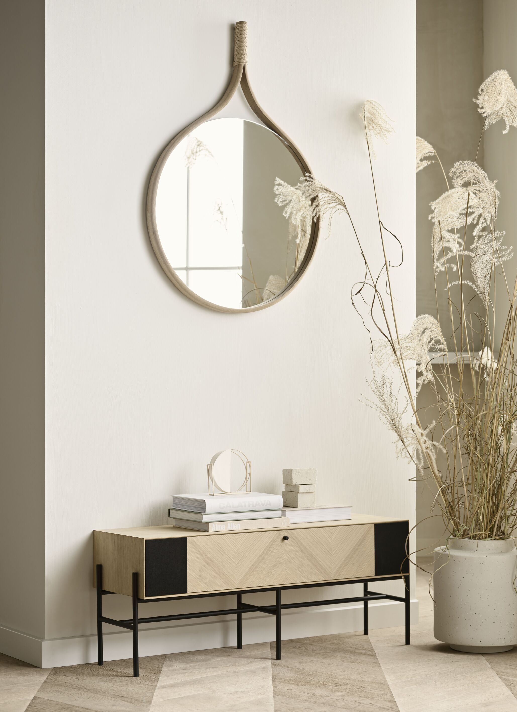 Kabinett mit Soundsystem Luxe ist ein einzigartiges Möbelstück, das die Funktionalität mit elegantem Design kombiniert. Er wurde vom dänischen Designer Michael H. Nielsen entworfen und unterscheidet sich durch ein spektakuläres Fischgrätenmuster, das das Licht subtil widerspiegelt und dem Innenraum einen einzigartigen Charakter verleiht. Vielen Dank an das gebaute System Wasserkabinett Perfekt als zentrales Element des Wohnzimmers oder des Multimedia -Raums. Die modulare Natur der Struktur ermöglicht die Installation auf einem Metallrahmen oder direkt an der Wand, was sie universell und praktisch macht.