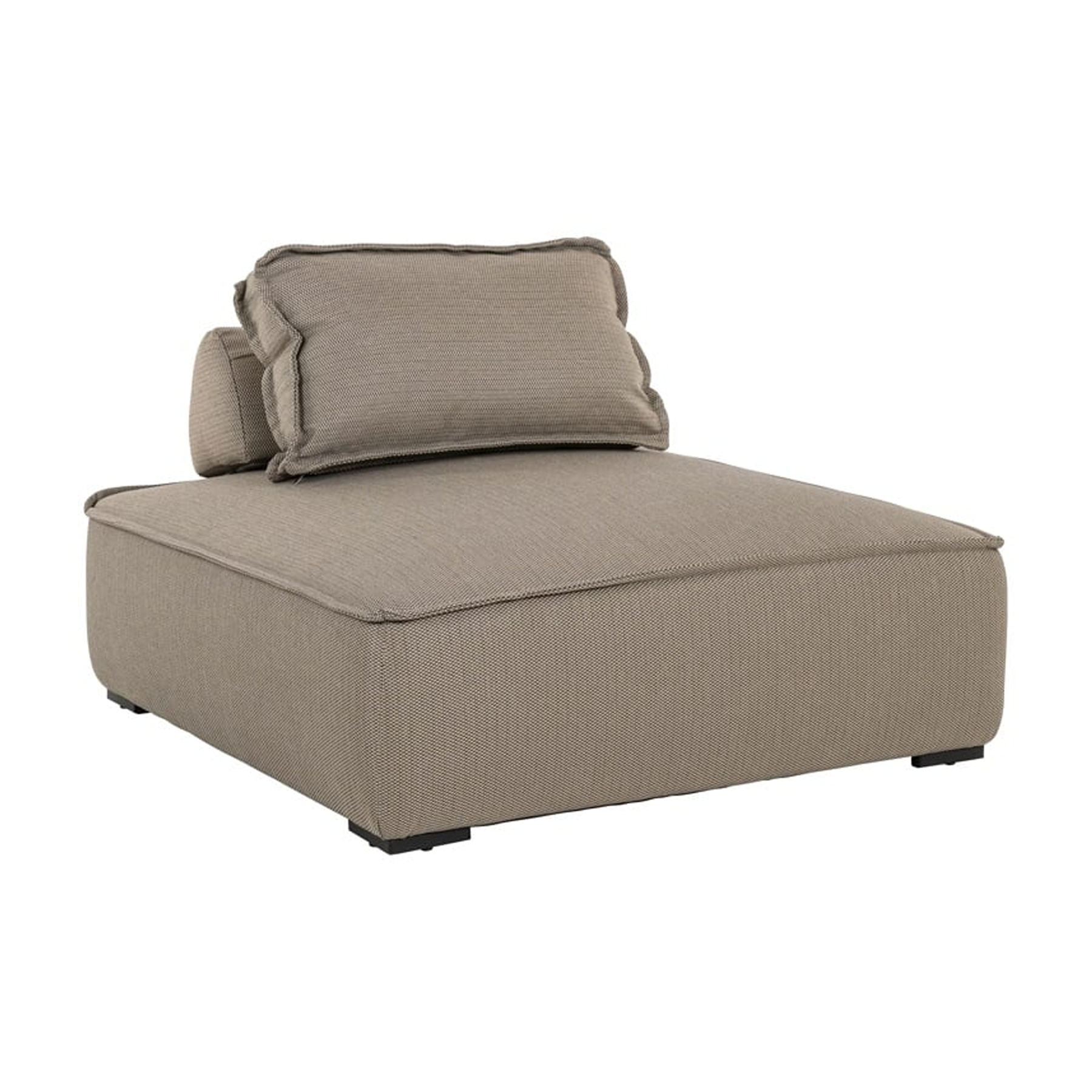 Chaise Es wurde mit hoher Qualität in einem gedämpften, natürlichen Farbton bedeckt, der nicht nur mit der Umwelt harmoniert, sondern auch Widerstand gegen Wetterbedingungen aufweist. Subtile Nähte verleihen ihm einen raffinierten Charakter, und niedrige, stabile Beine gewährleisten die Haltbarkeit und Solidität der Struktur.