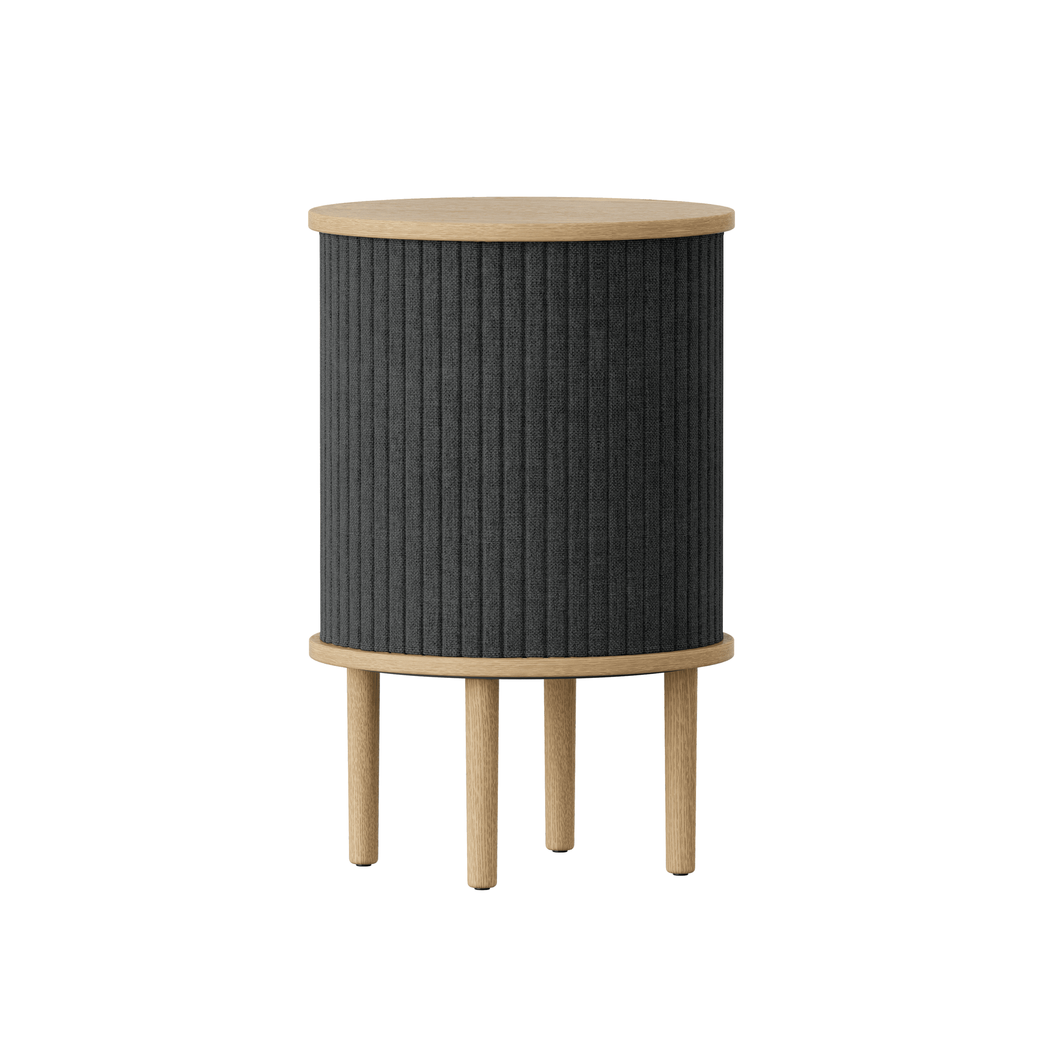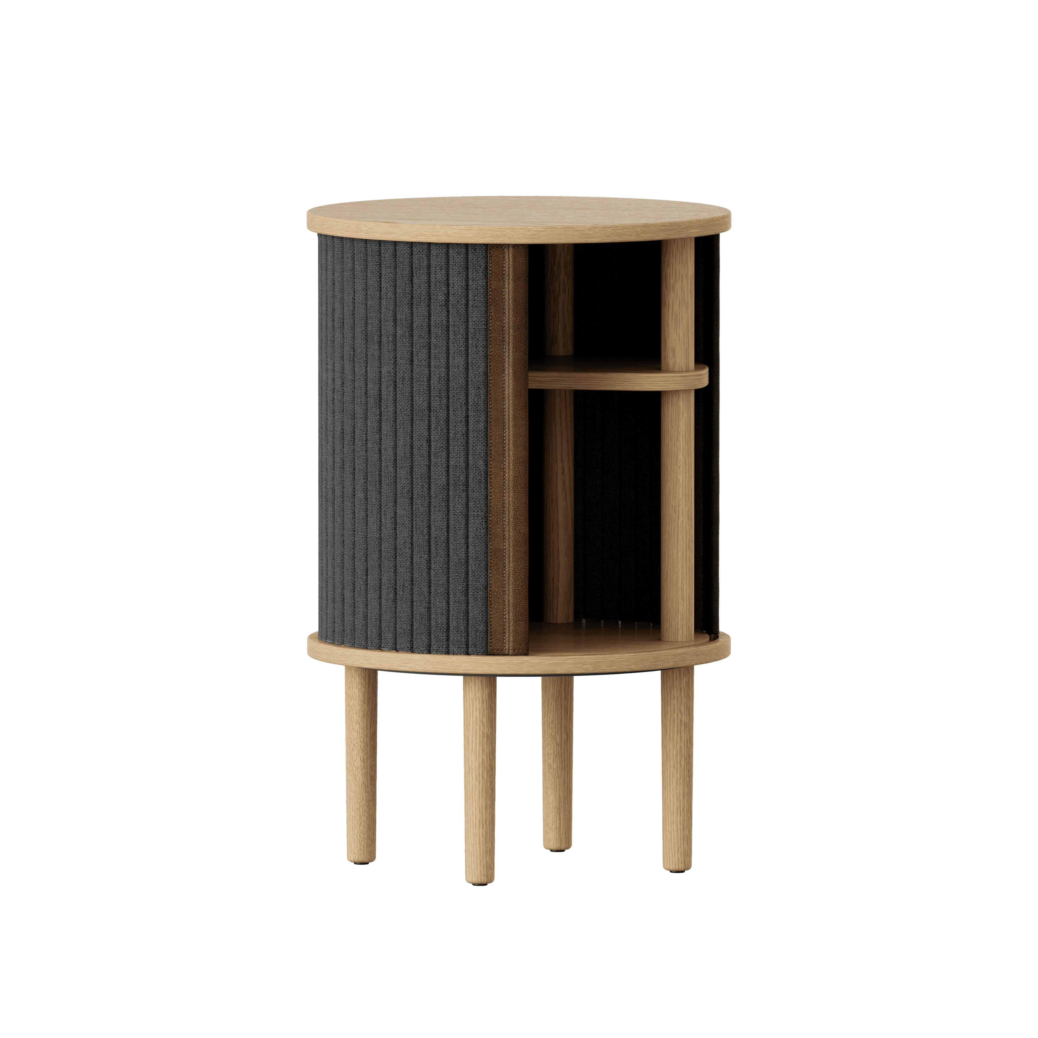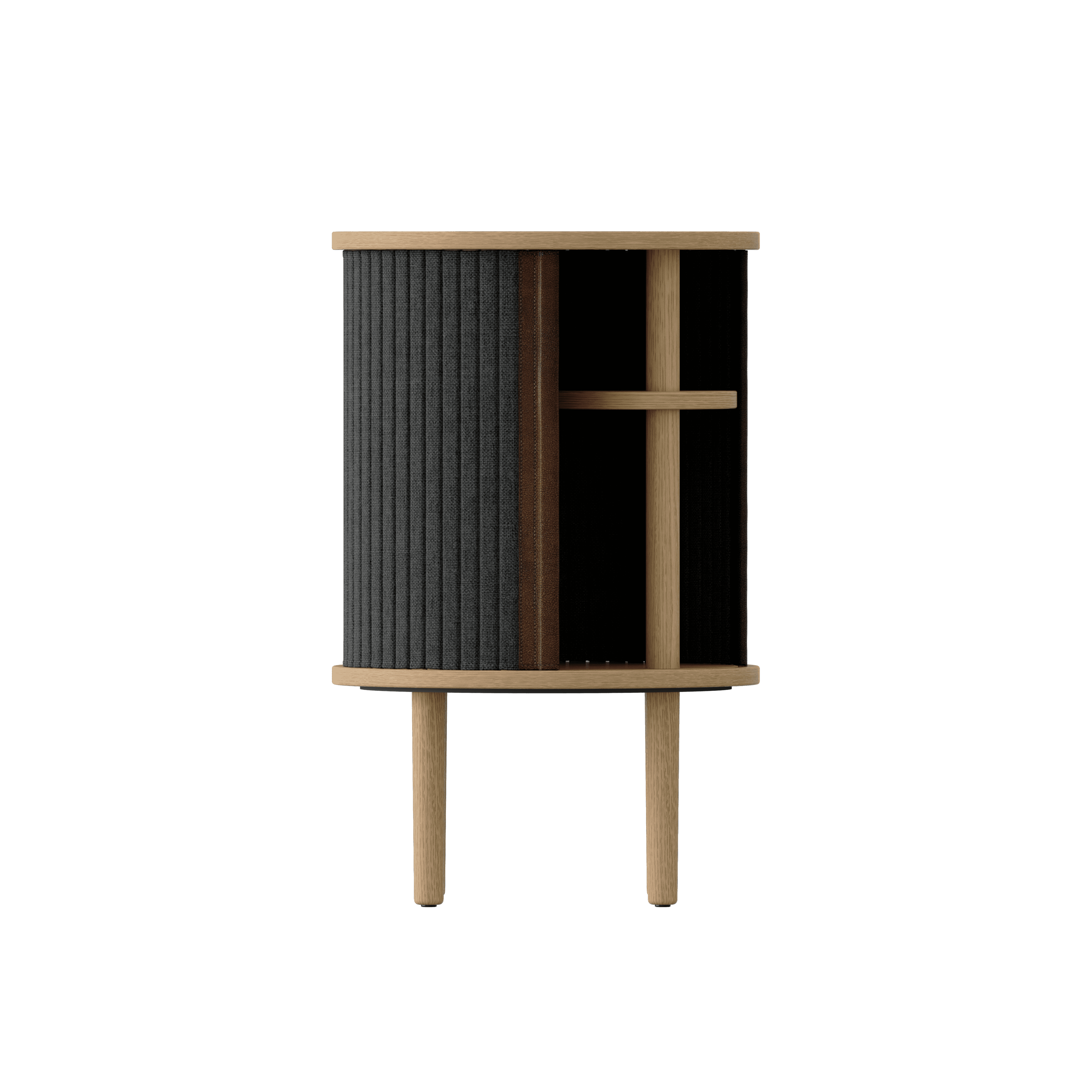 Erhältlich in drei Farben: natürliche Eiche, dunkle Eiche und schwarze Eiche mit Jalousien in vier sorgfältig ausgewählten Farben des Horizons, 100% recycelt. Die Jalousien sind austauschbar, was bedeutet, dass Sie sie leicht selbst ändern können und dem Projekt ein neues Leben hinzufügen können, ohne dass ein völlig neues Möbel gekauft werden muss, was gleichzeitig zur Rettung von Weltressourcen beiträgt.