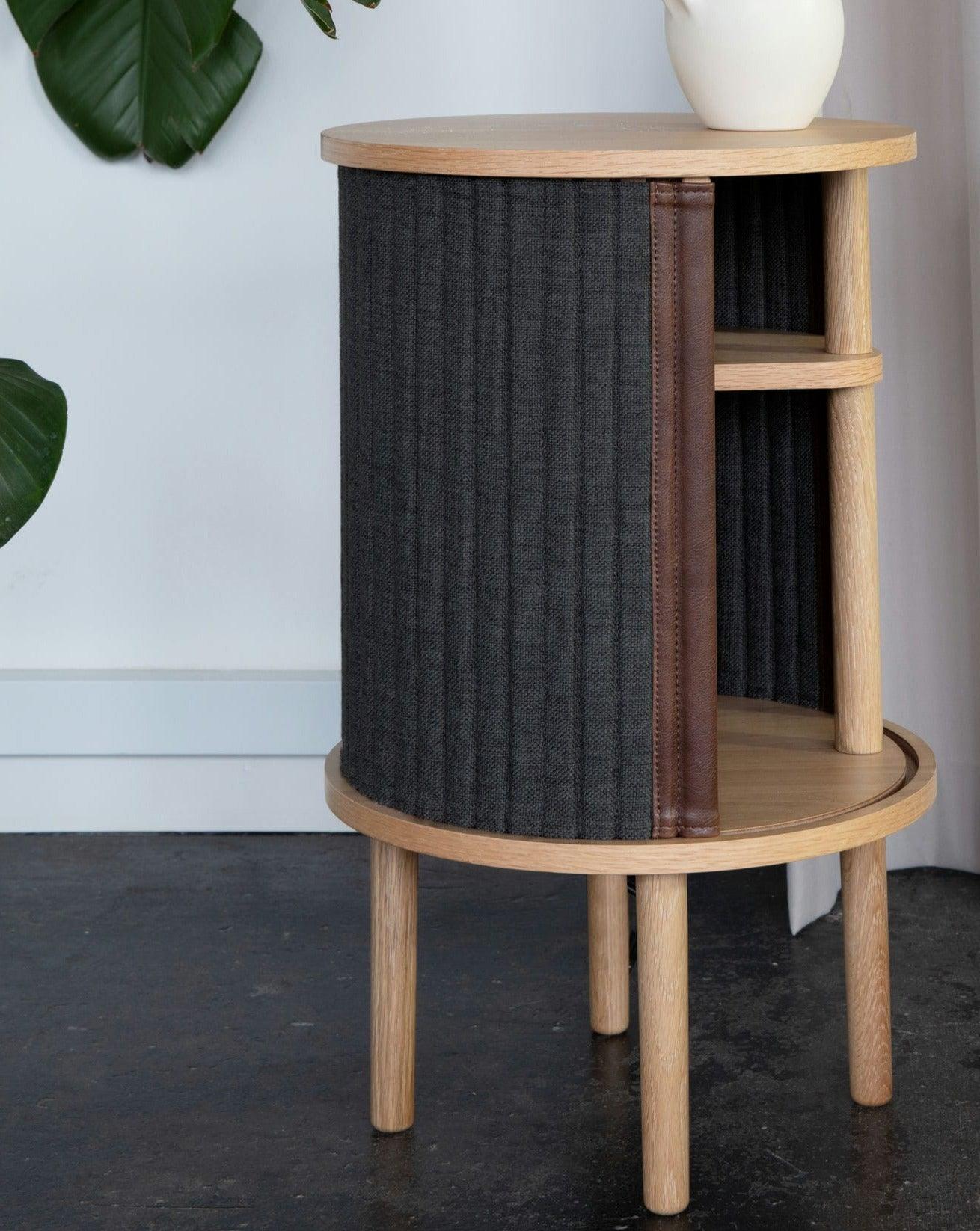 Tisch Es bietet nicht nur einen praktischen Ort zum Speichern von Kleinigkeiten, sondern verfügt auch über ein speziell geformtes internes Regal mit einem Schnitt für höhere Gegenstände wie Bücher oder Zeitschriften.