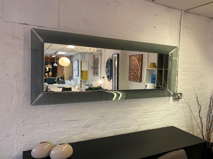 Vergnügen ist rechteckig Spiegel mit großen Größen, gekennzeichnet durch ein elegantes und modernes Design, das sowohl vertikal als auch horizontal die Vielseitigkeit der Suspension gewährleistet. Sein charakteristisches Merkmal ist ein klarer 10 cm breiter Rahmen aus gebogenem, silberischem Glas, das diesem eleganten Spiegel besonders Pracht und Charakter verleiht.