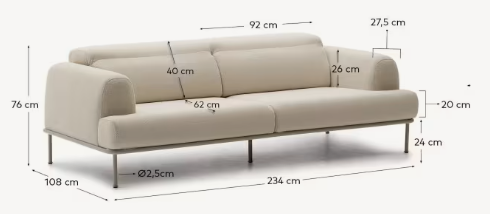 Das Aurum 3-Sitzer-Sofa in elegantem Ecru ist eine moderne Interpretation von Luxus und Komfort. Seine Panoramastruktur auf einem hellbeigen Sockel aus lackiertem Metall verleiht dem Raum ein Gefühl von Weite und Harmonie. Dank seiner klaren Linien und subtilen Proportionen eignet sich dieses Modell ideal für moderne, minimalistische und skandinavische Einrichtungsstile. Es dominiert den Raum nicht, verleiht ihm aber einen edlen Charakter.