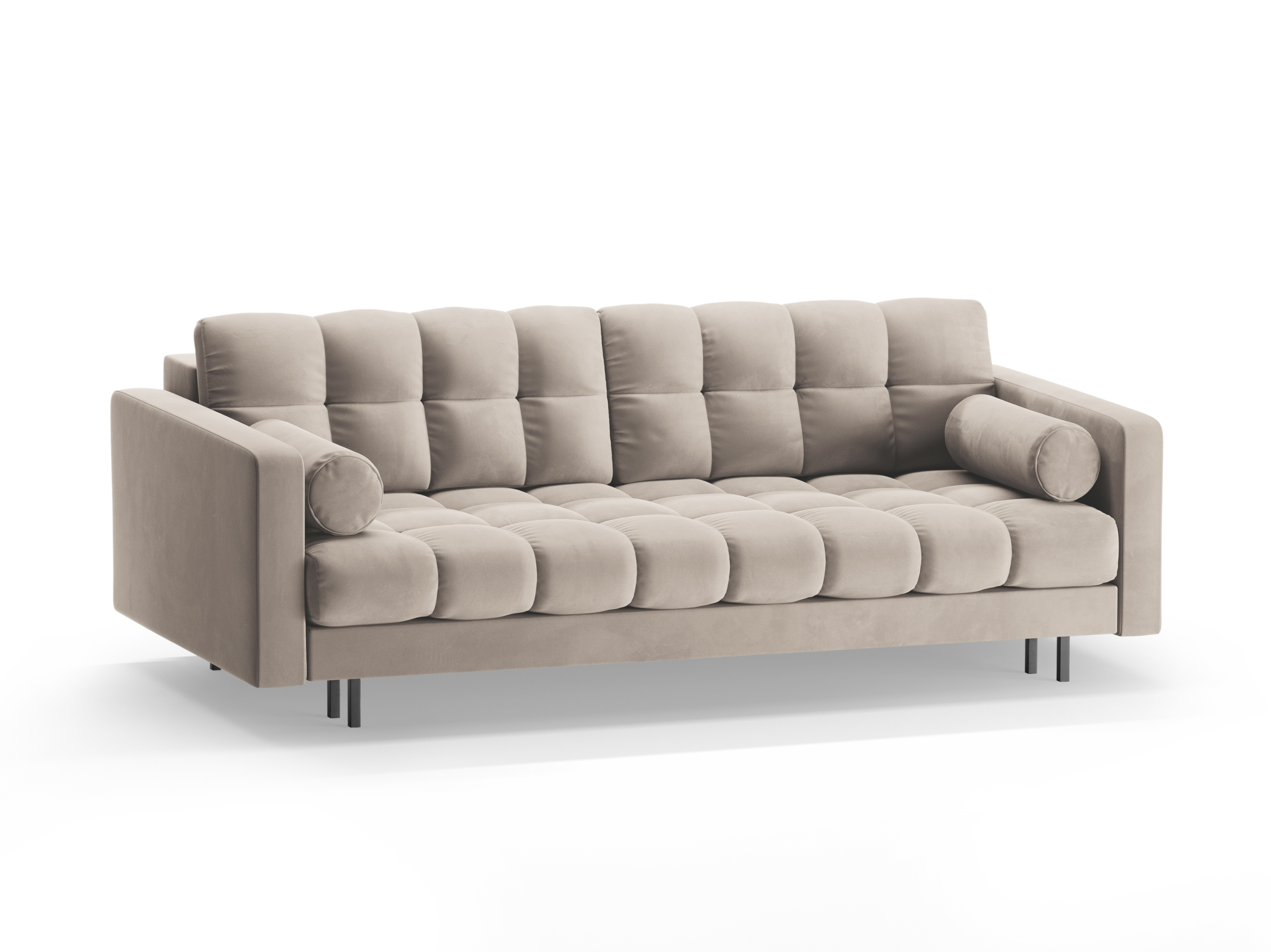 Samt 3-Sitzer Sofa mit Schlaffunktion BALI beige mit schwarzem Gestell