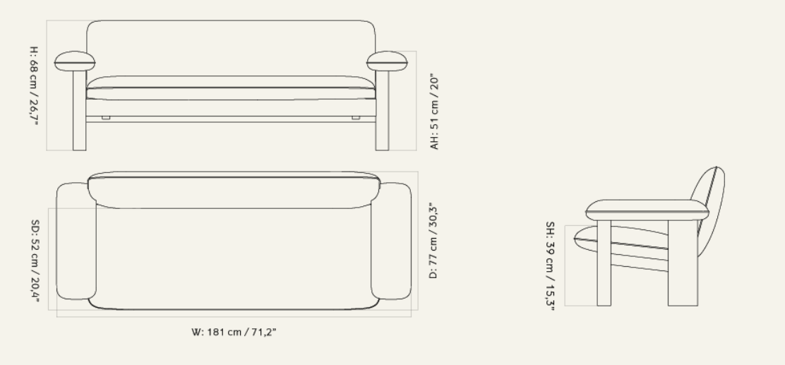 Sofa BRASILIA Schafsleder mit Eichenbasis