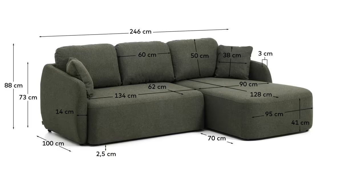 Rechtsseitige 3-Sitzer-Couch mit Schlaffunktion LAIRA dunkelgrün