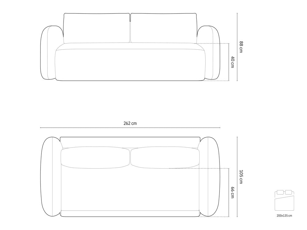 Wymiary powierzchni spania: 200x135 cm