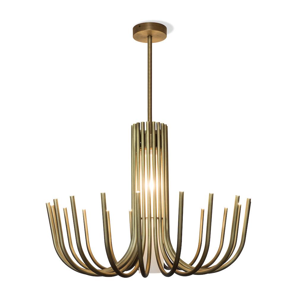 Der Stardust Kronleuchter ist inspiriert von großen klassischen Kronleuchtern, erhält jedoch durch die Verwendung von Metall ohne zusätzliche dekorative Elemente ein minimalistisches Aussehen. Stardust bietet doppelte Beleuchtung, dank der Mikro-LEDs, die an den Enden der Arme platziert sind, sowie einer Glühbirne in einem Glaszylinder, die die Hauptlichtquelle darstellt.