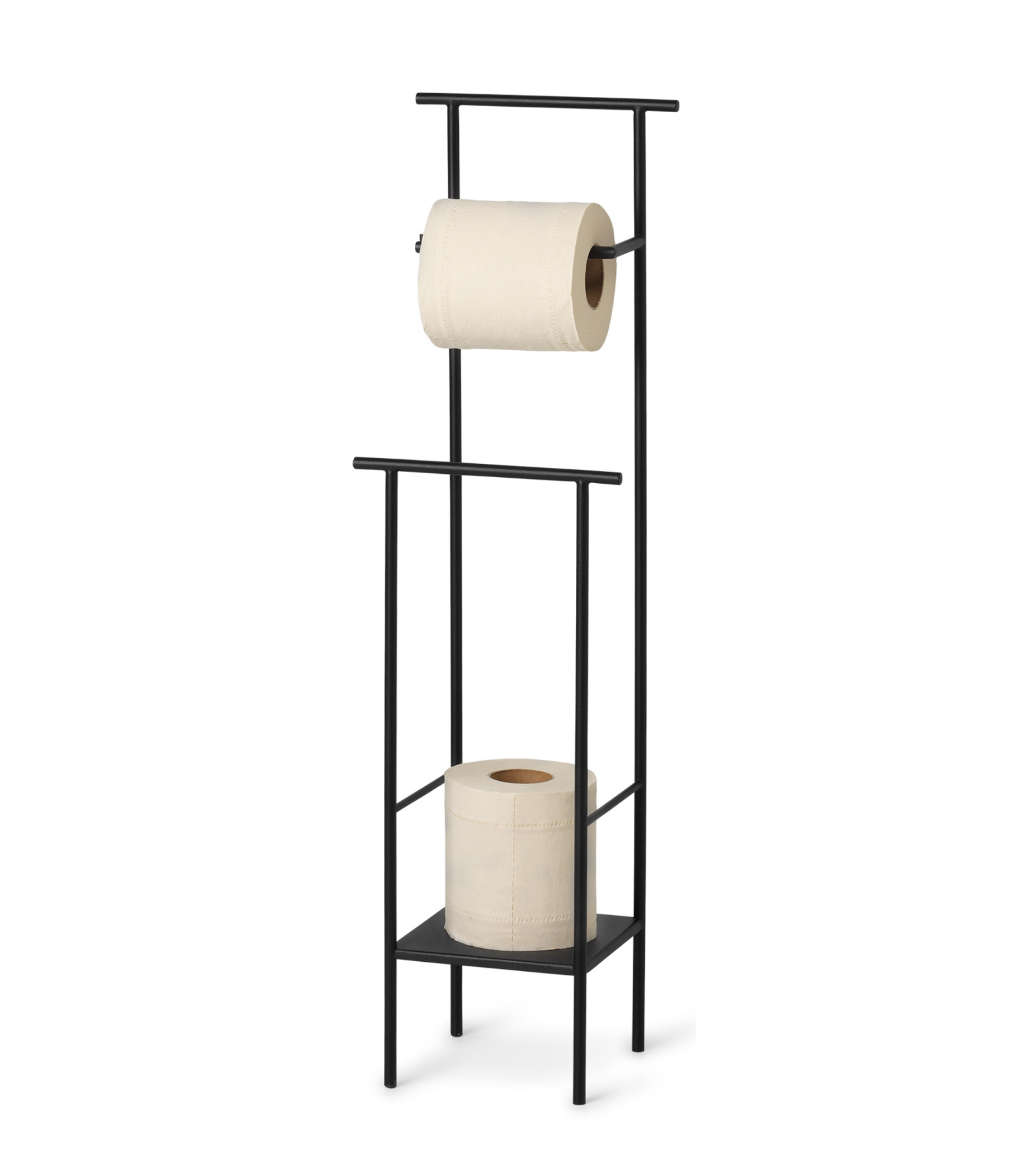 Die Dora-Kollektion, die mit einer minimalistischen Garderobe begann, wurde um eine Reihe praktischer, freistehender Möbelstücke erweitert, die perfekt für das Badezimmer geeignet sind. Darunter ist ein Toilettenpapierständer , der modernes Design mit Alltagstauglichkeit verbindet. Mit zusätzlichem Platz zum Aufbewahren von Ersatzrollen oder anderen Badezimmerutensilien bringt es Ordnung und Ästhetik in jeden Raum.