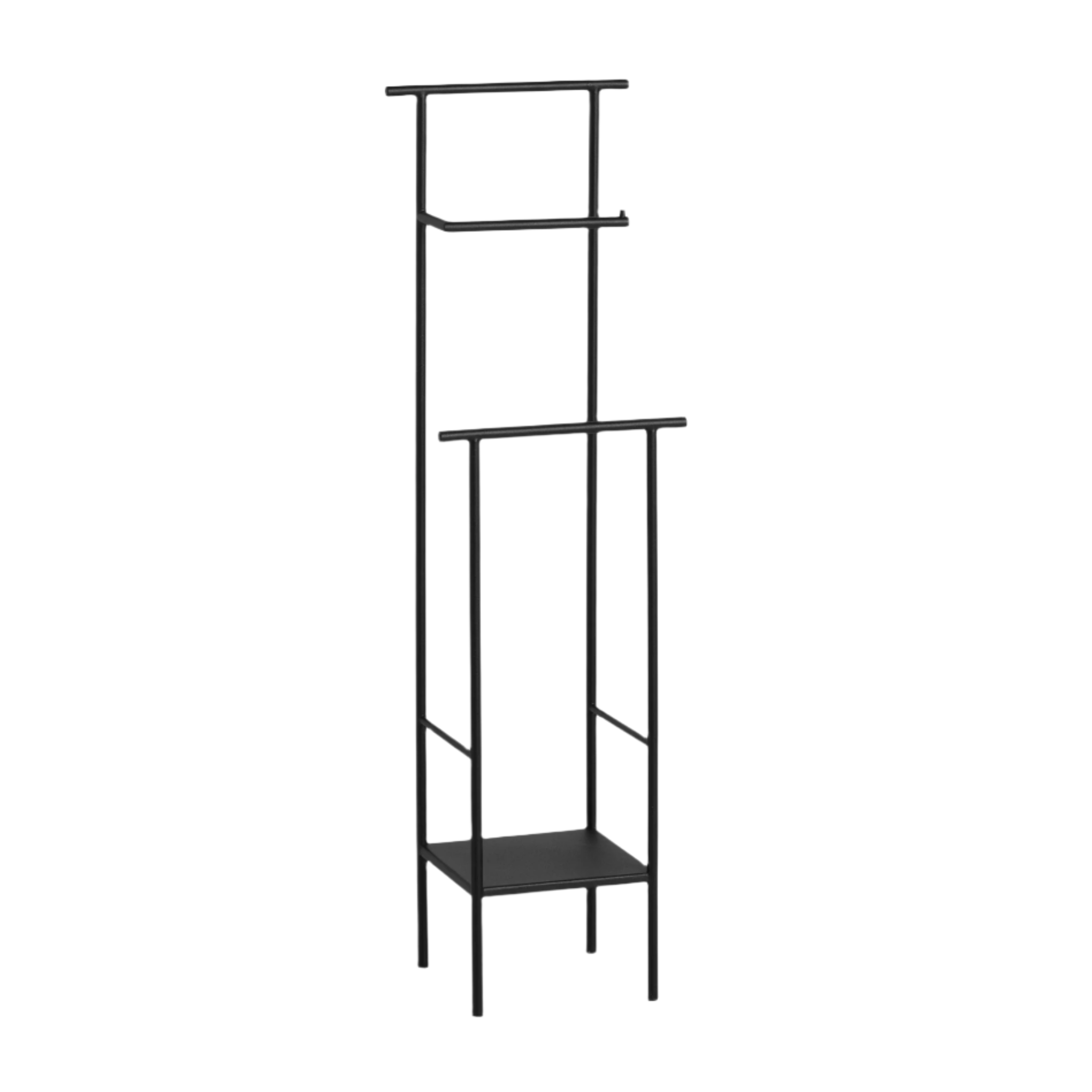 Der Ständer besteht aus pulverbeschichtetem Edelstahl und ist rostbeständig, was ihn zu einer großartigen Lösung für Feuchträume macht. Seine schlichte Form und das mattschwarze Finish machen es zur perfekten Ergänzung für moderne und minimalistische Badezimmerdesigns.