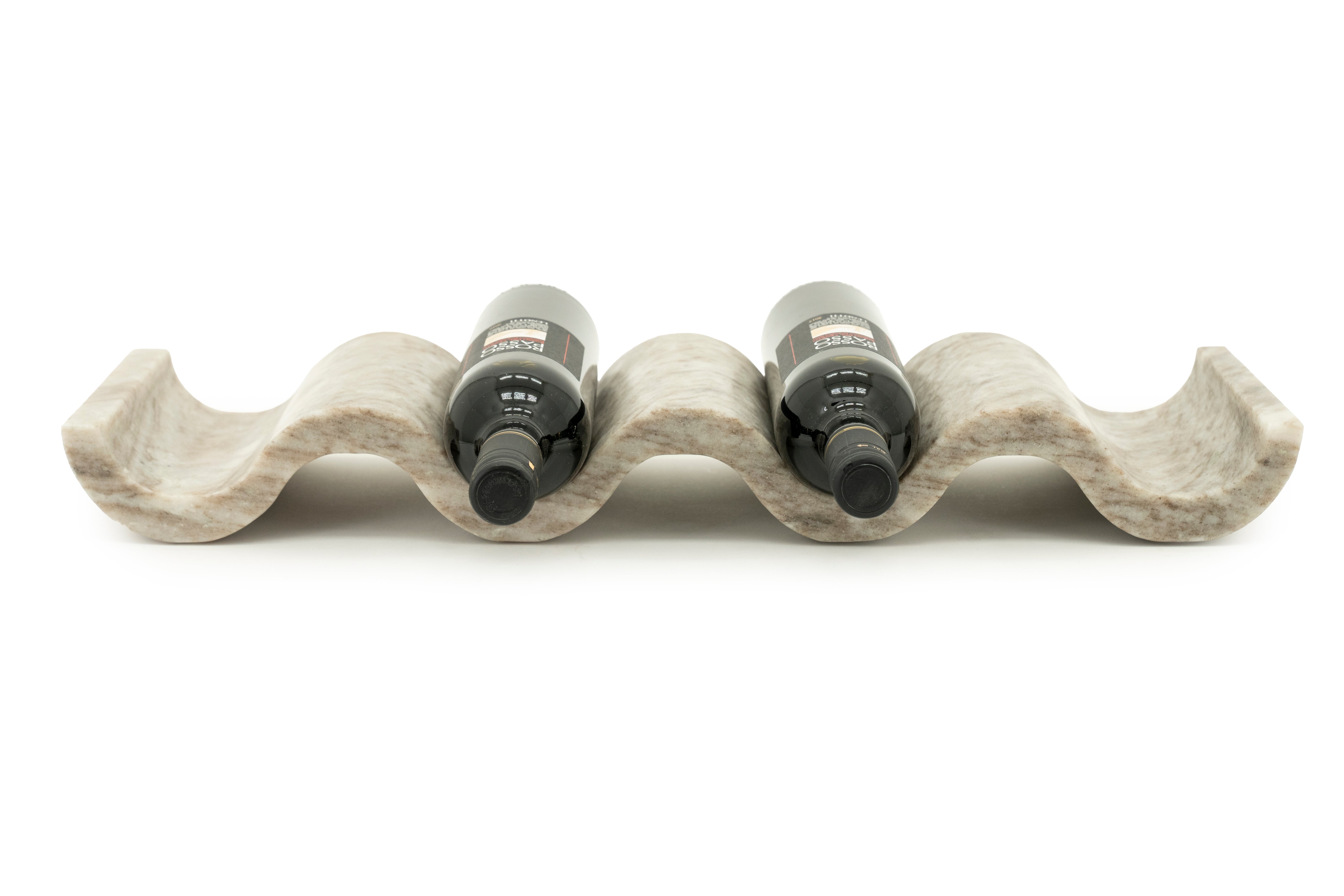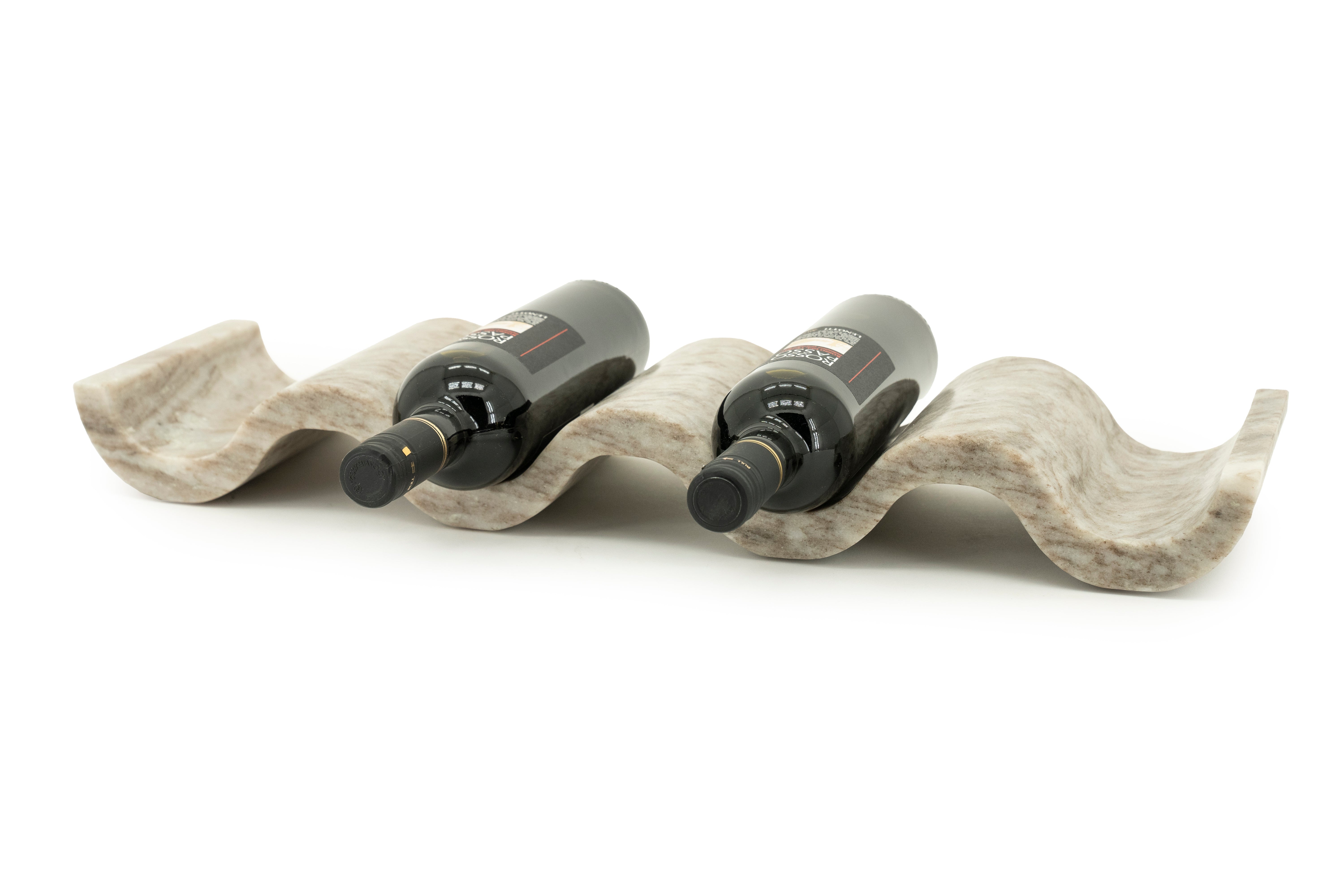 Eleganter Weinhalter Airen ist ein außergewöhnliches Dekorationselement, das Funktionalität mit zeitlosem Stil verbindet. Hergestellt aus natürlichem Marmor, begeistert er mit seiner subtilen Zeichnung des Steins und der organischen, geschwungenen Form. Seine skulpturale Gestalt ermöglicht eine eindrucksvolle Präsentation von Weinflaschen und bringt gleichzeitig einen Hauch von Luxus in Ihr Zuhause.