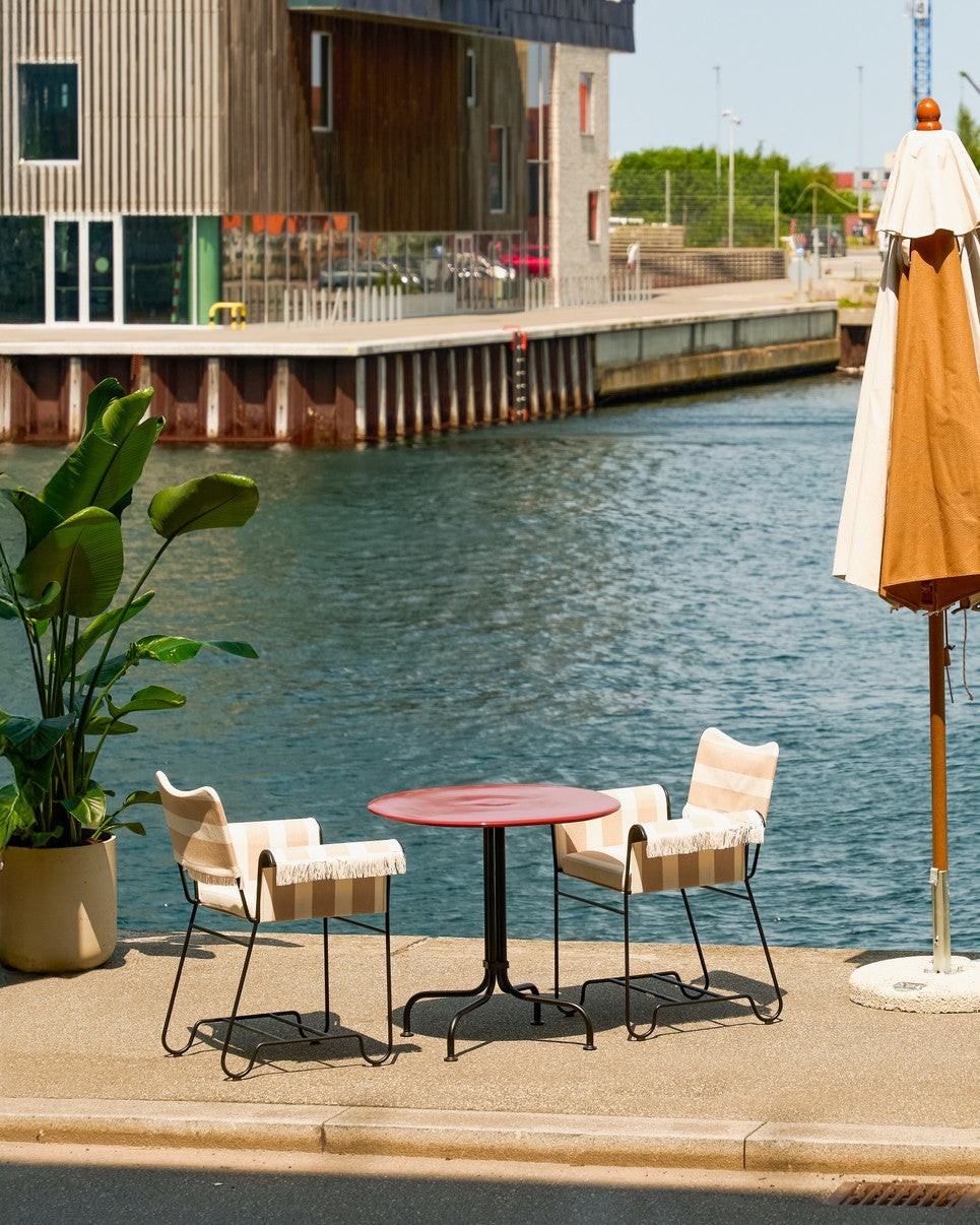 Tisch Carmel Bistro Esstisch ist ein Entwurf von OEO Studio, der die unbeschwerte Atmosphäre der kalifornischen Küste mit dem klassischen Charme der europäischen Café-Kultur verbindet. Die Tischplatte aus italienischer, hochglänzender Steingutkeramik – erhältlich in den Farben Bordeaux und Weiß – wird von einem charakteristischen, „baumartigen“ Gestell aus schwarzem Edelstahl getragen. Entworfen für Innen- und Außenräume, Tisch eignet sich perfekt sowohl für die Terrasse als auch für die Küche oder ein gemütliches Esszimmer.