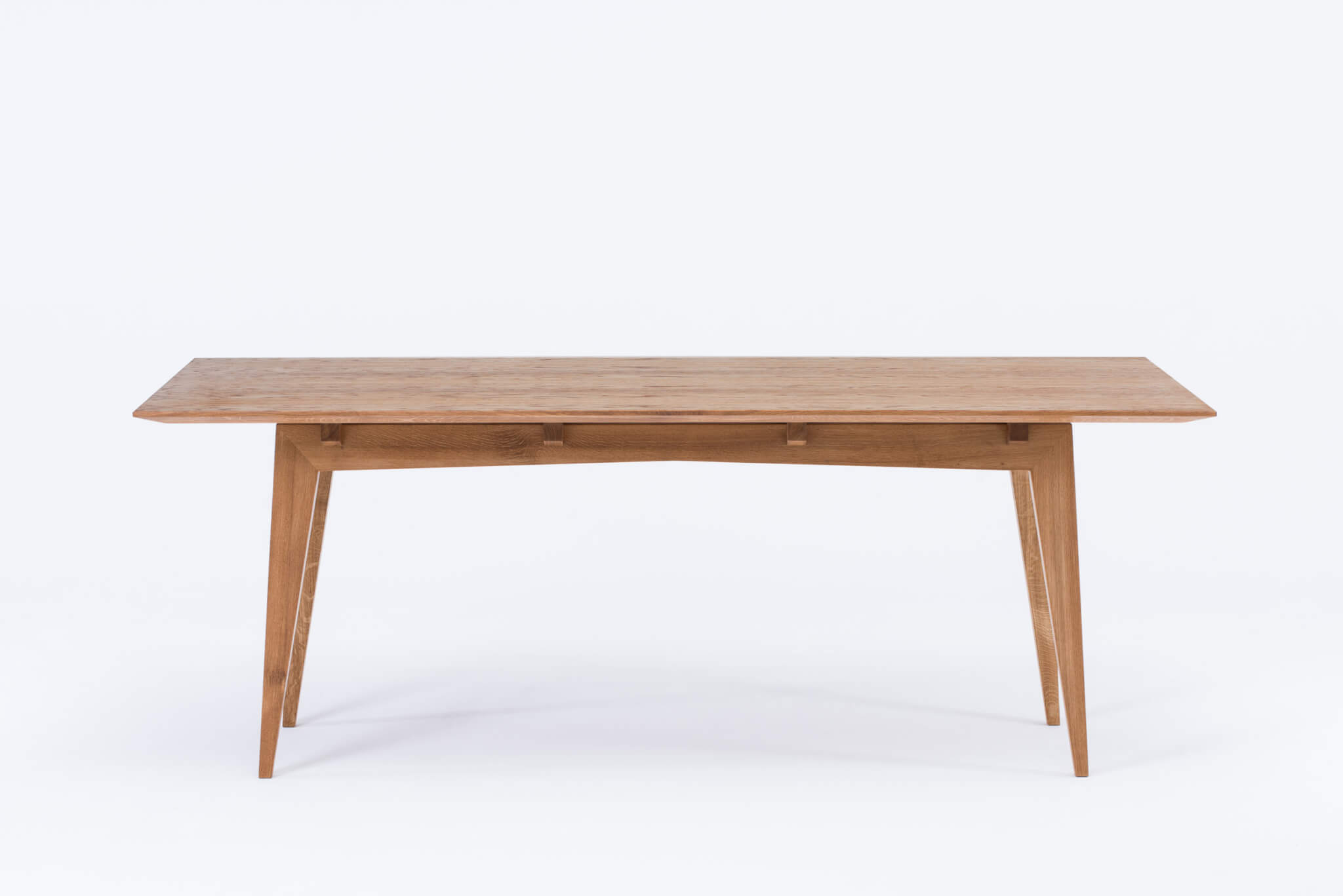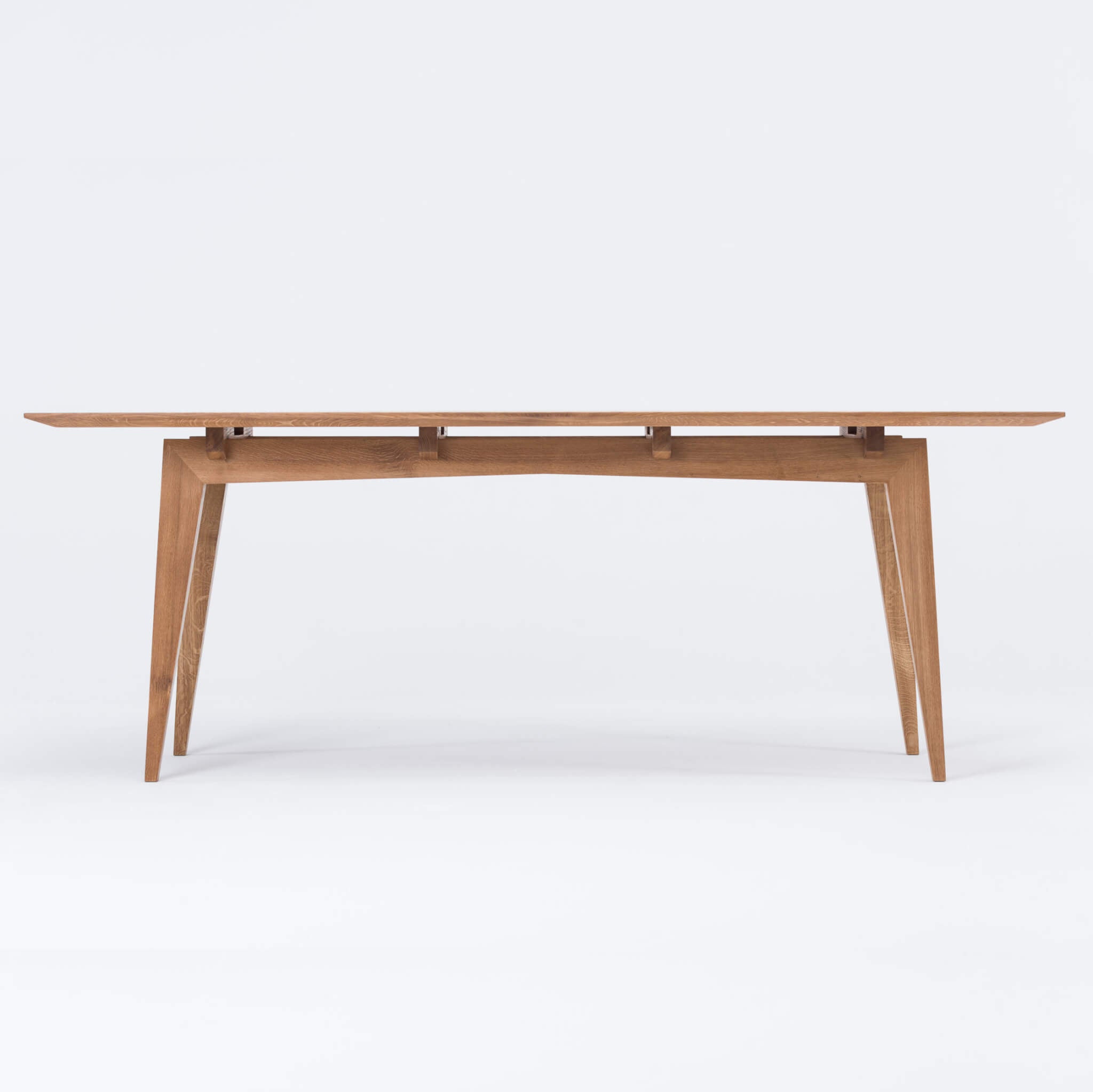 Der Tisch Tamaza vereint Leichtigkeit in der Form mit solider Konstruktion. Die schlanken, länglichen Beine verleihen ihm einen zarten Charakter, während die tiefe Auskerbung der Tischkante dafür sorgt, dass die Tischplatte trotz ihrer massiven Dicke über dem Gestell zu schweben scheint. Es ist ein moderner Tisch, der Eleganz mit Zuverlässigkeit verbindet und zu einem funktionalen und dekorativen Element in jedem Raum wird.