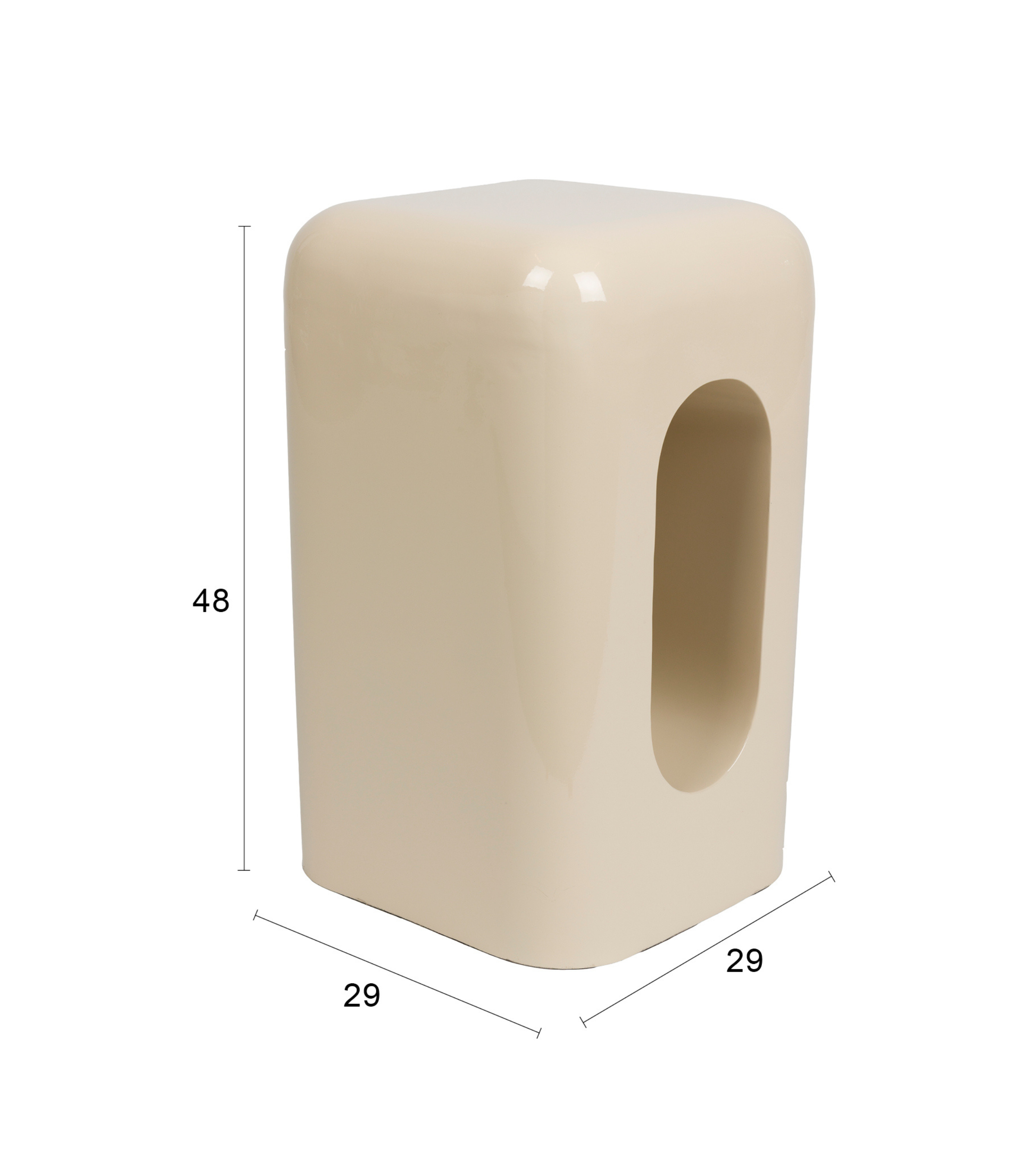 Beistelltisch, hergestellt aus Metall in beiger Farbe, ist ein minimalistisches, aber ausdrucksstarkes Element für moderne Innenräume. Die abgerundeten Kanten und die geometrische Form verleihen ihm einen leicht futuristischen Charakter und sorgen gleichzeitig dafür, dass das Gesamtbild elegant und subtil wirkt. Dank seiner kompakten Form eignet er sich perfekt als praktischer Tisch neben dem Sofa, dem Bett oder im Flur.