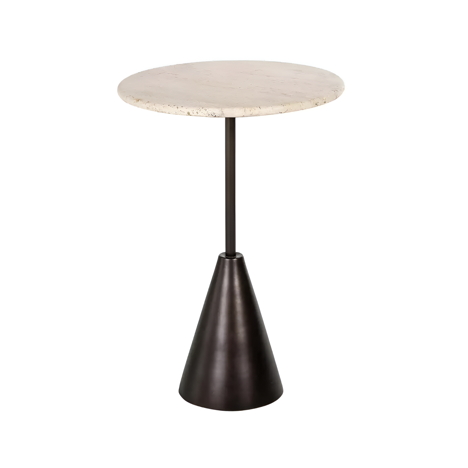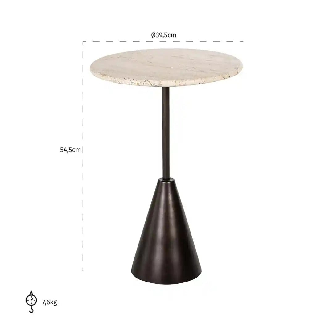 Beistelltisch AVALON Travertin mit braunem Fuß