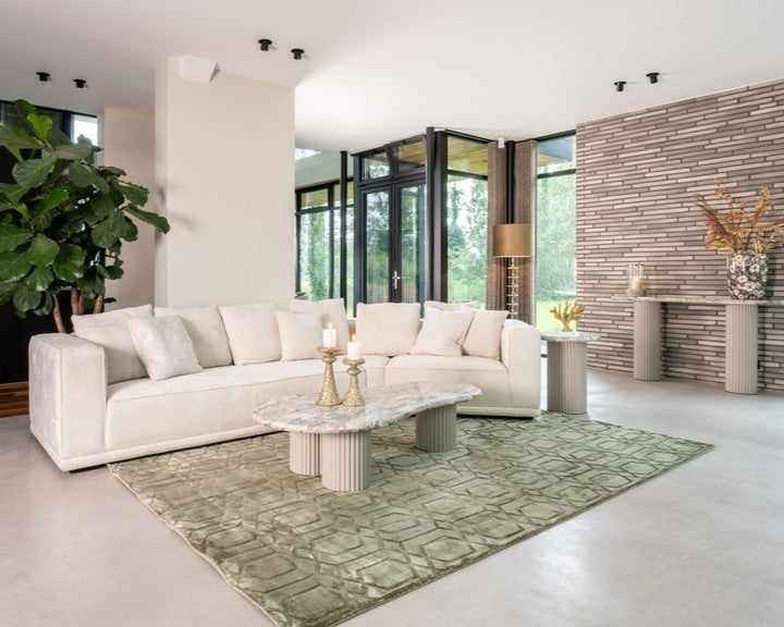 Kaffeetisch Coronel ist ein elegantes Möbelstück, das modernes Design mit der natürlichen Schönheit von Stein verbindet. Der Kaffeetisch mit Marmorplatte aus Toronto-Marmor begeistert mit seinem einzigartigen Muster, das jedes Exemplar zu etwas Besonderem macht. Der beige Sockel mit drei geriffelten Beinen verleiht dem Ganzen einen architektonischen Charakter und fügt sich perfekt in moderne sowie klassische Innenraumgestaltungen ein.