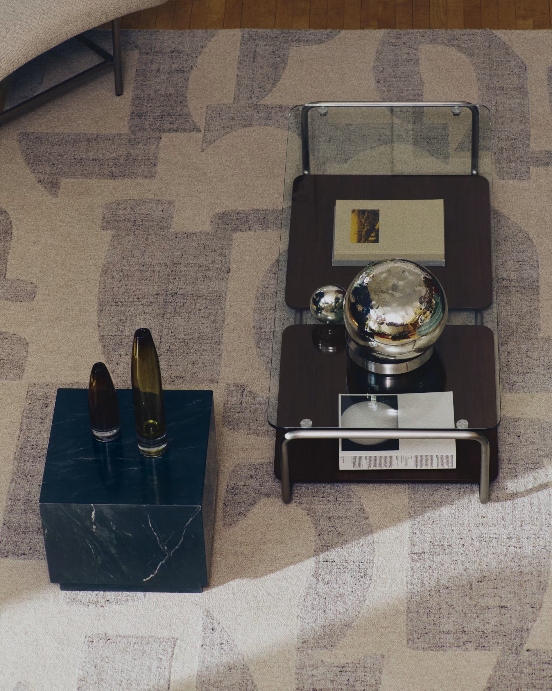Blat wykonany z hartowanego szkła o grubości 10 mm nadaje całości lekkości i nowoczesnego charakteru. Dwie tacki z forniru orzechowego o grubości 0,6 mm zostały wykończone lakierem PU, co podkreśla ich elegancję i trwałość. Konstrukcja i nogi powstały ze szczotkowanej stali nierdzewnej, odpornej na odciski palców i łatwej w pielęgnacji. Drewno posiada certyfikat FSC™ 100%, który potwierdza odpowiedzialne zarządzanie lasami i zrównoważone pochodzenie surowca. Dzięki możliwości zestawienia go ze stolikiem pomocniczym, stolik kawowy Tarsel zyskuje dodatkową funkcjonalność i staje się niezwykle wszechstronnym elementem aranżacji.