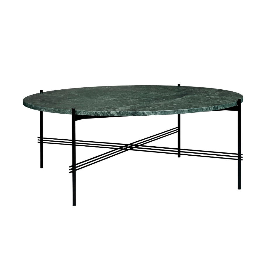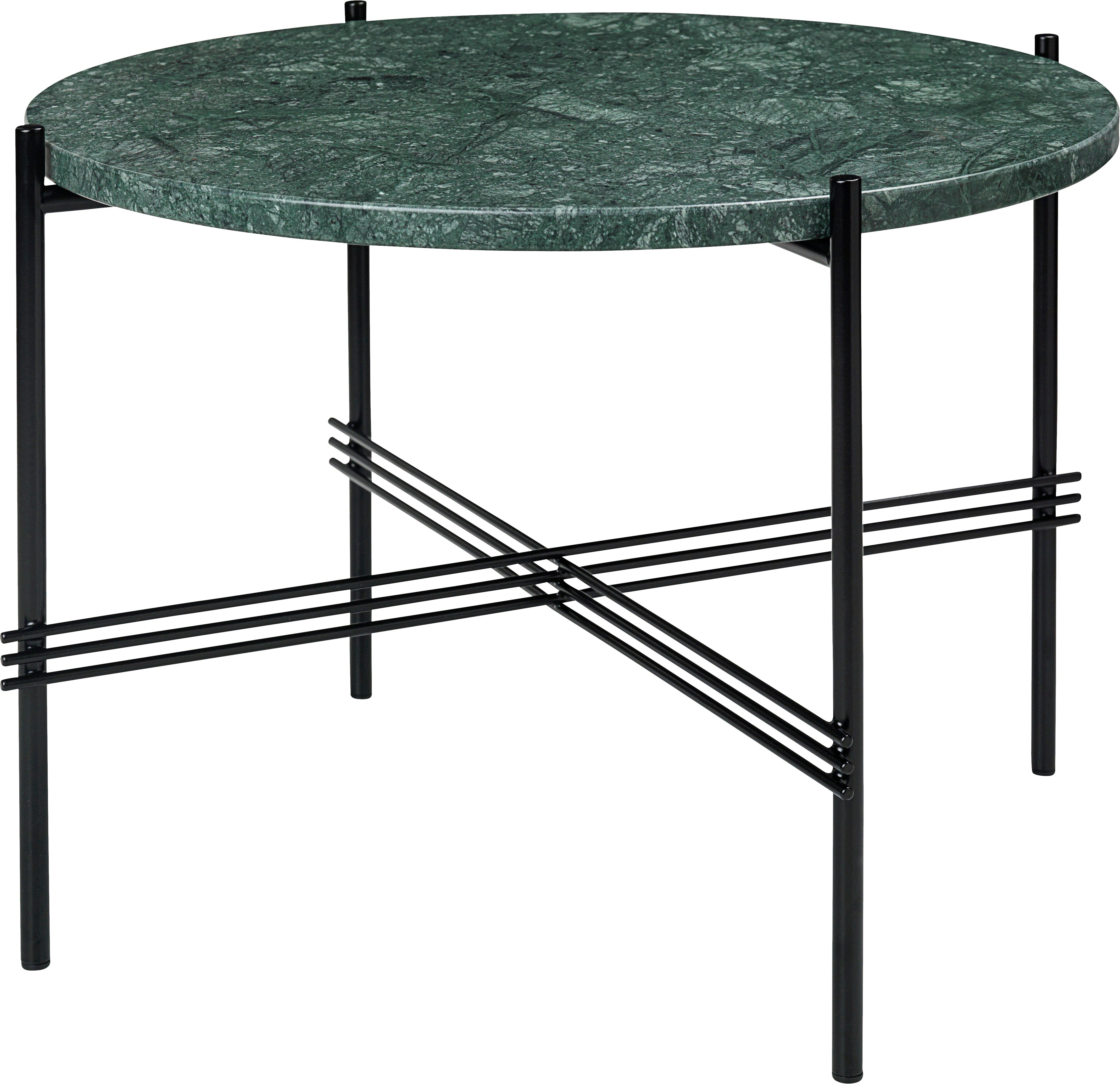 Runder Couchtisch TS aus grünem Marmor mit schwarzem Gestell