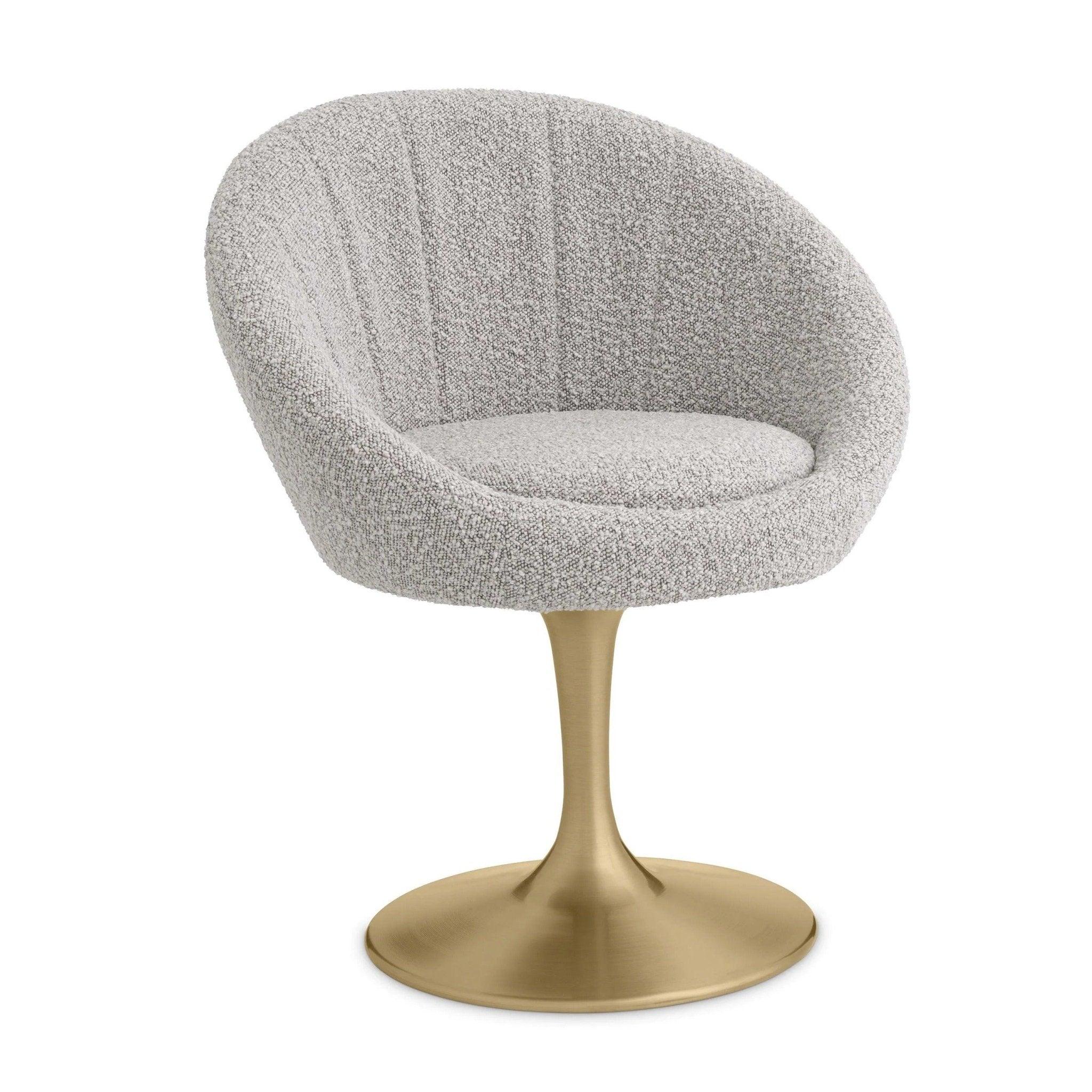 Stuhl im Boucle O'Neill Grey Stoff mit einer Messingbasis