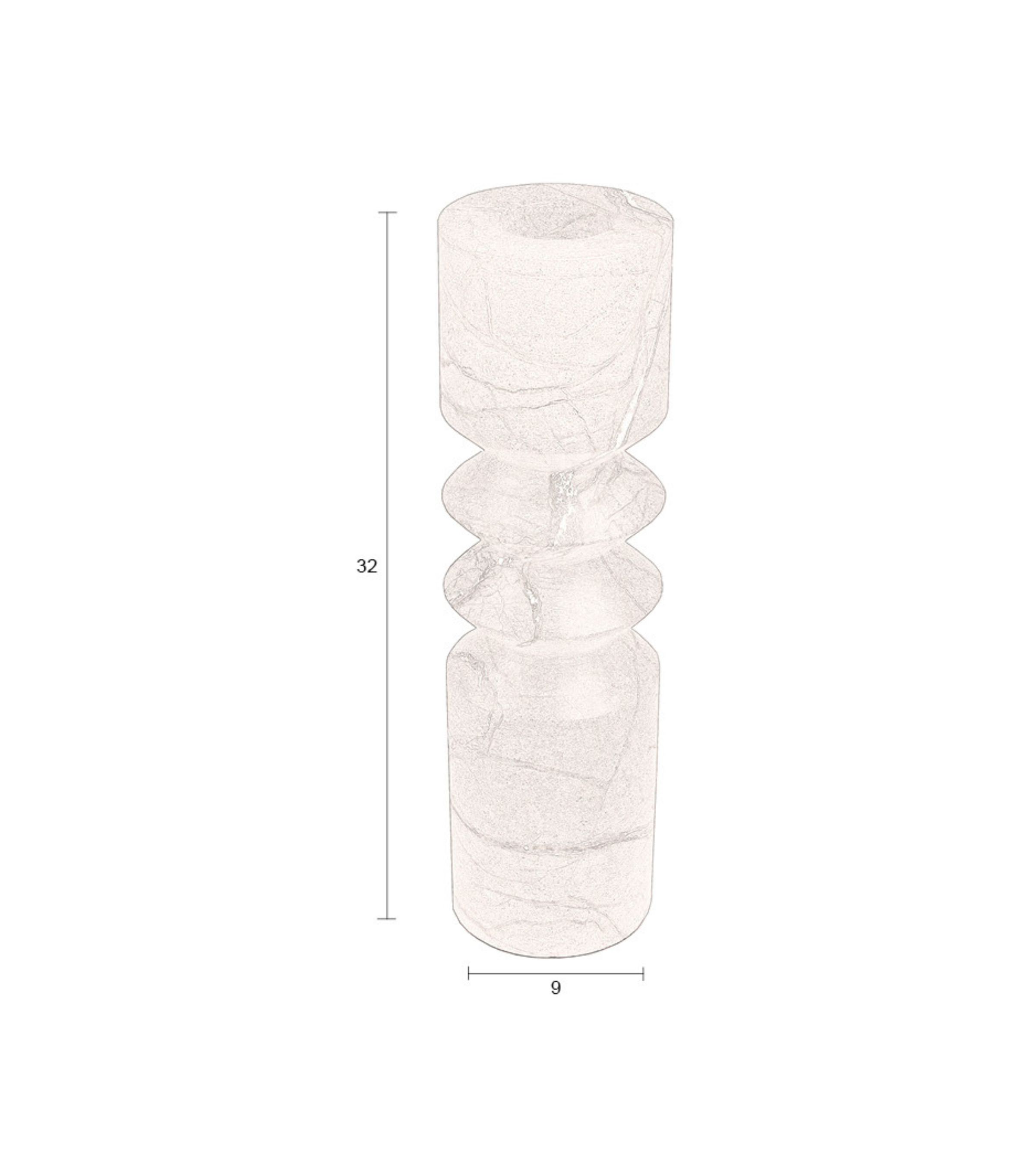 Dieser Marmor-Kerzenhalter präsentiert sich hervorragend allein oder in Kombination mit anderen Elementen der Satpura-Kollektion – einem Beistelltisch und einem Bücherregal. Er ist die ideale Wahl für das Wohnzimmer, das Schlafzimmer oder eine Leseecke, wo er eine gemütliche Atmosphäre, Klasse und einen Hauch von Vintage-Charme mitbringt. Dank seiner natürlichen Struktur ist jedes Exemplar einzigartig und verleiht jedem Raum Charakter.