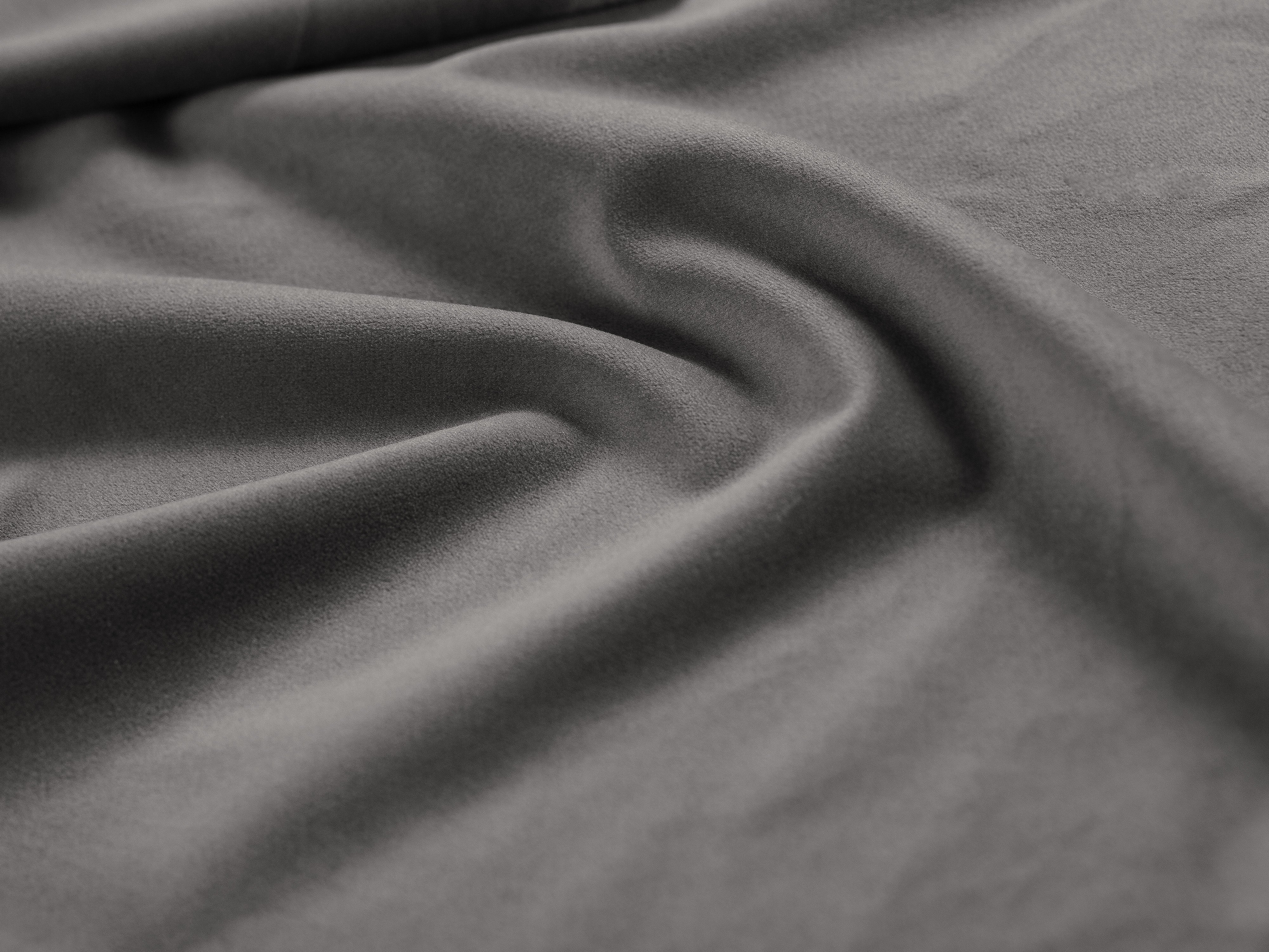 Materiał: Syntetyczna tkanina imitująca aksamit – niezwykle miękka i jedwabista w dotyku. Solidna i trwała, dobrze znosi codzienne użytkowanie. Bardzo dobra odporność na ścieranie (test Martindale: 50 000, 320 g/m²). Tkanina pozytywnie przeszła test papierosa, co oznacza, że układ tapicerski odporny jest na tlenie się oraz zapłon płomieniem i spełnia normę PN-EN 1021-1:2014-12. Kolor może się nieznacznie różnić w zależności od ustawień monitora.