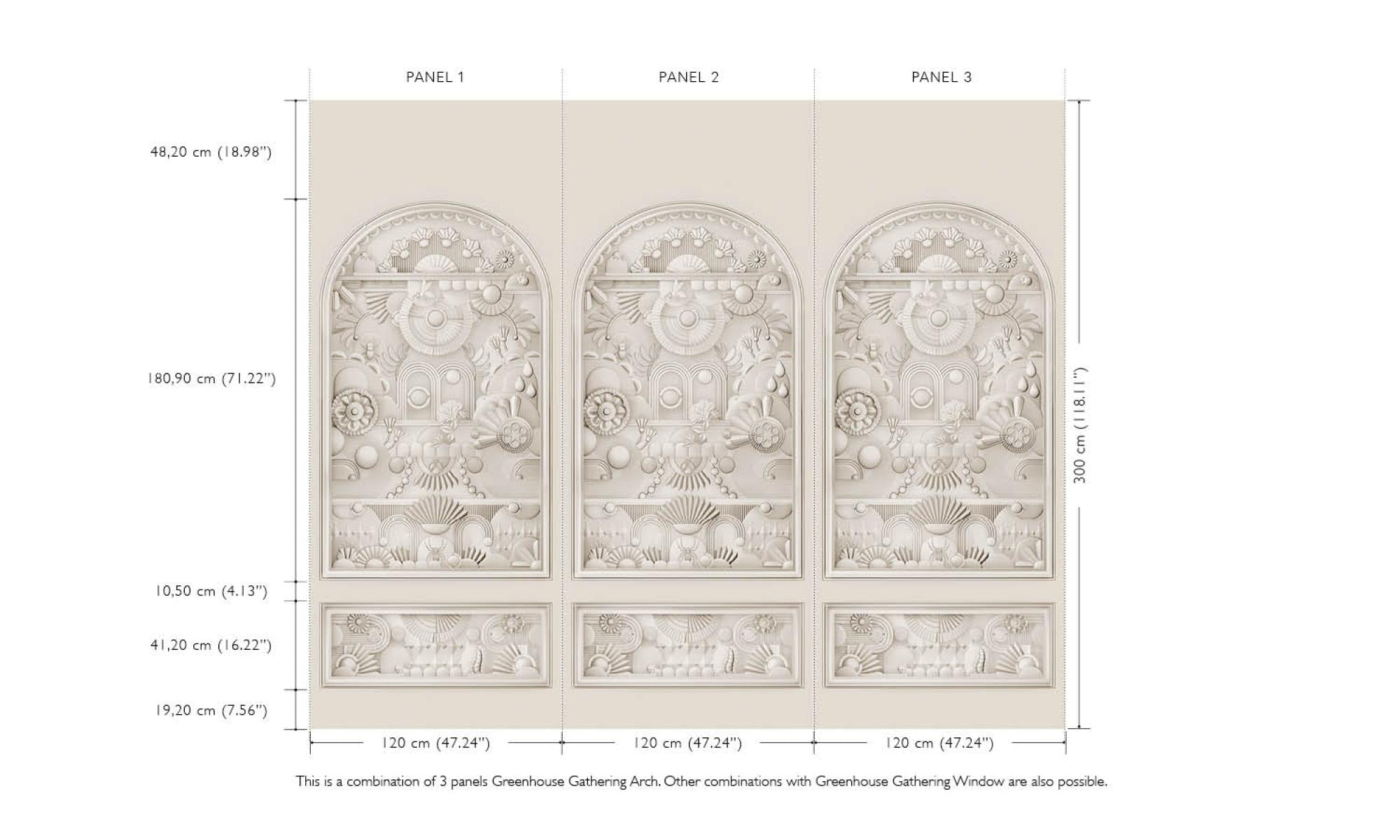 Textilwandbild im Art-Déco-Stil in Bogenform GREENHOUSE GATHERING ARCH hellbeige