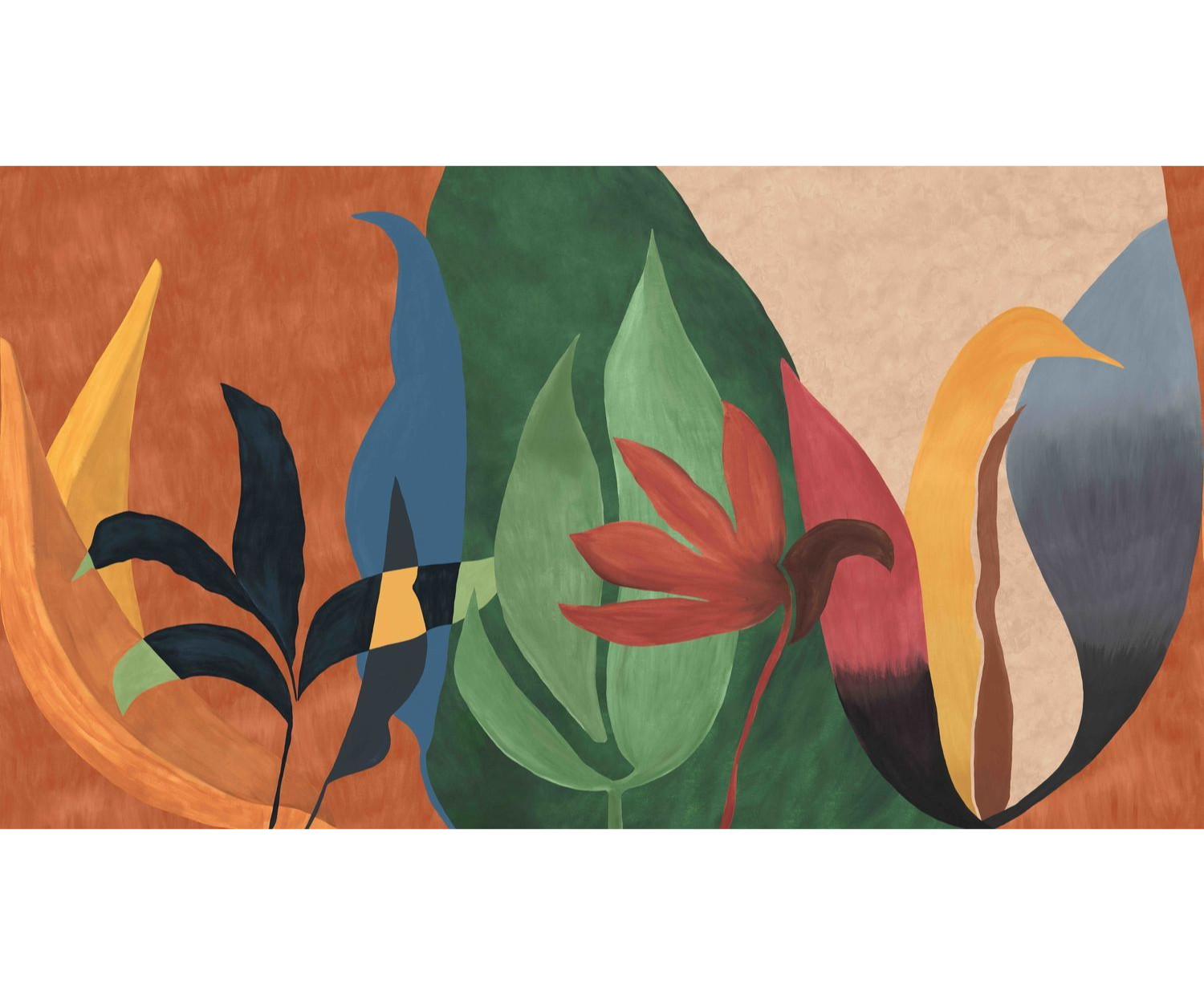 Wandbild mit abstraktem Pflanzenmotiv von Blättern NAHUA in rostbraun mit grünem Akzent