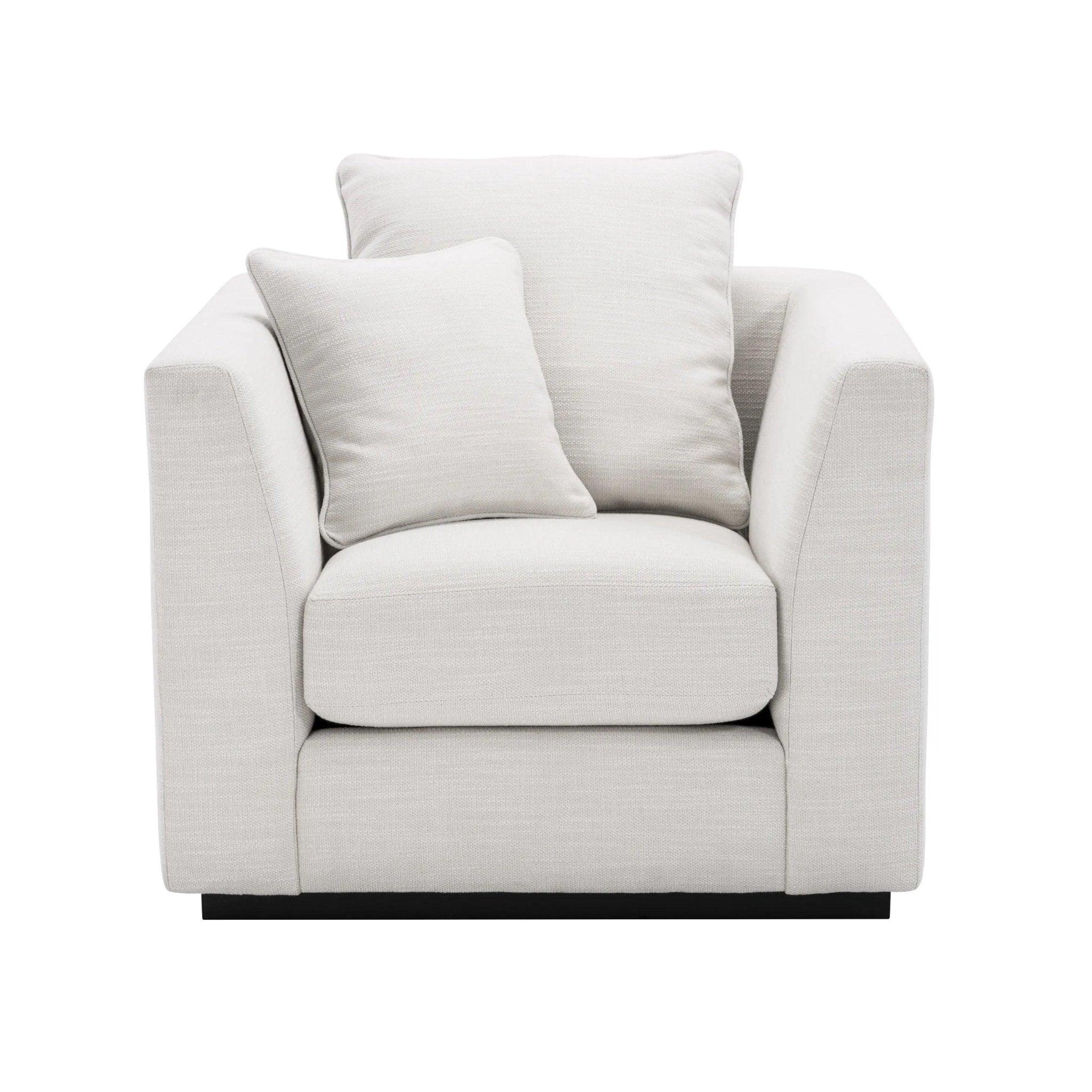 Der schwarze Sockel des weißen Sessels Taylor ist nicht nur ein konstruktives Element, sondern ein Ausdruck von Modernität und Stil. Der weiße Bezug Avalon verleiht ihm Eleganz und Klasse und schafft eine harmonische Komposition. Darüber hinaus ist der elegante Sessel Taylor mit zwei bequemen Kissen ausgestattet, die noch mehr Komfort bieten und zum Entspannen einladen. Es ist ein Möbelstück, das sich mühelos in bestehende Einrichtungsstile einfügt und einen modernen Akzent in Ihr Wohnzimmer bringt.