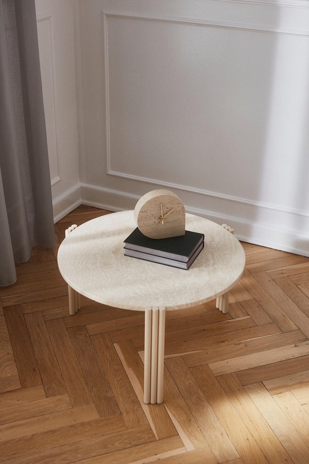 Tribus Side Table, ein helles Oberteil mit einer beige Basis