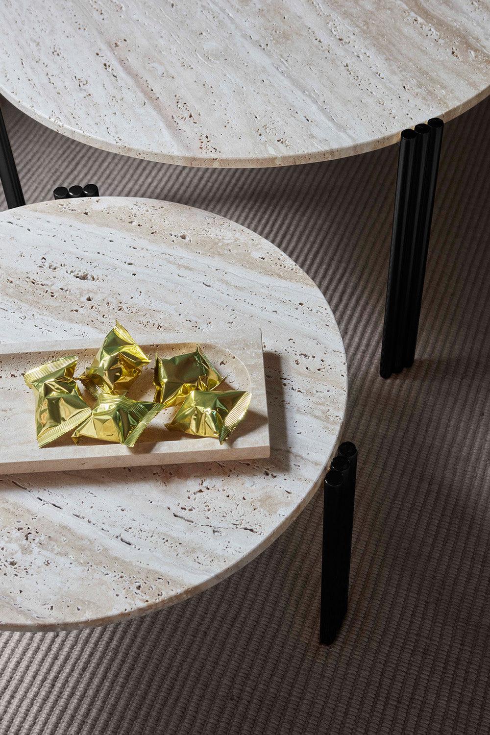 Tribus Side Table, ein helles Oberteil mit einer schwarzen Basis